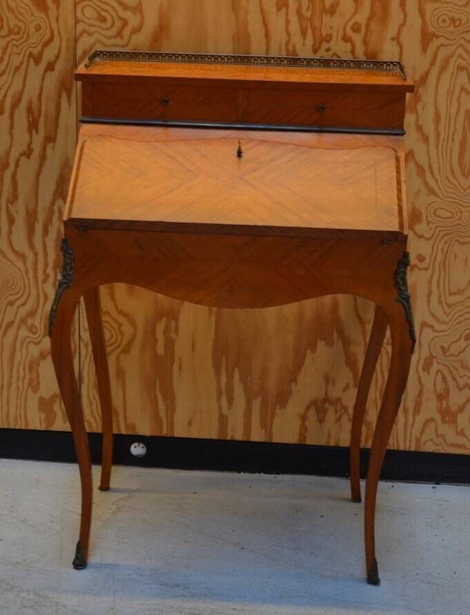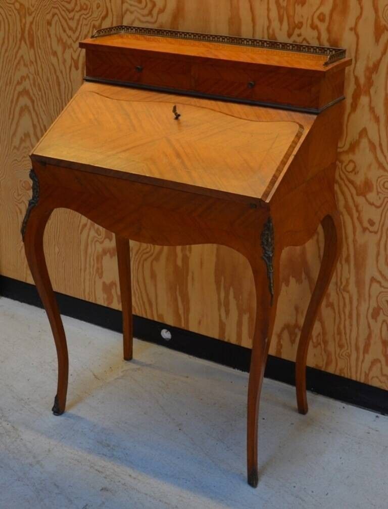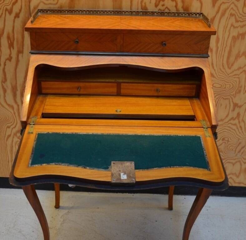ouvrant par deux tiroirs, un abattant formant écritoire et découvrant deux tiroirs et une cachette.