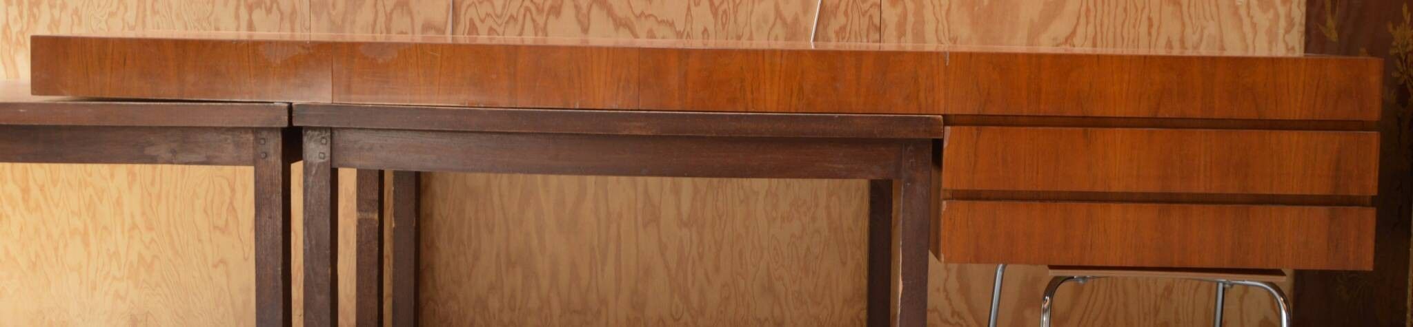 de forme rectangulaire, présentant un caisson à droite, ouvrant par six tiroirs.