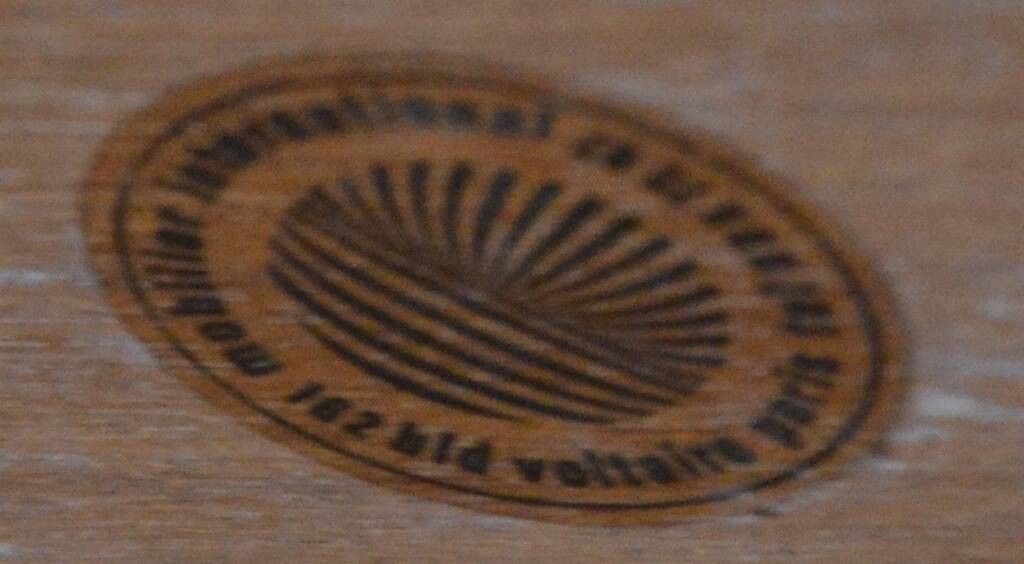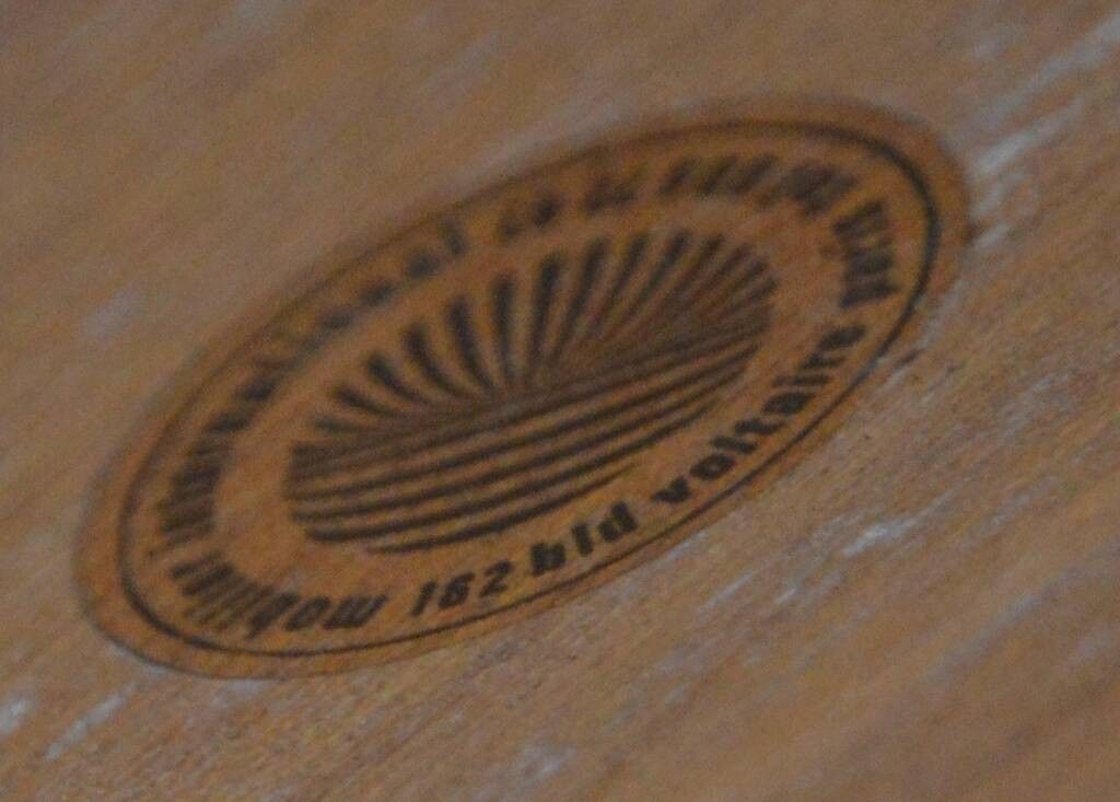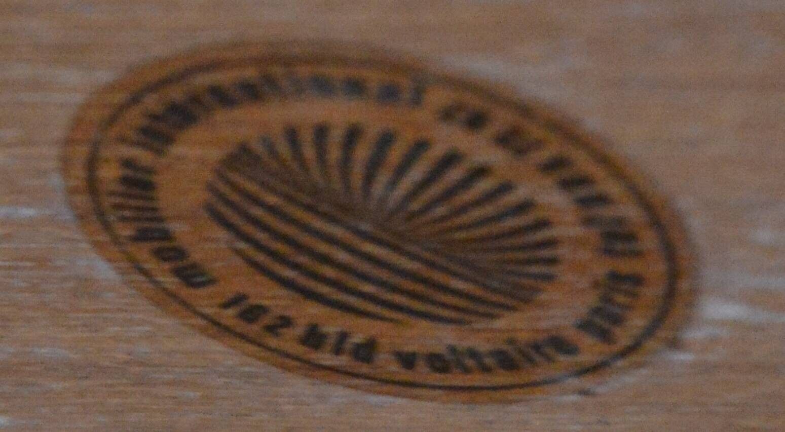 Etiquette sous la plateau, Edition Mobilier International, 162 Bld Voltaire Paris.