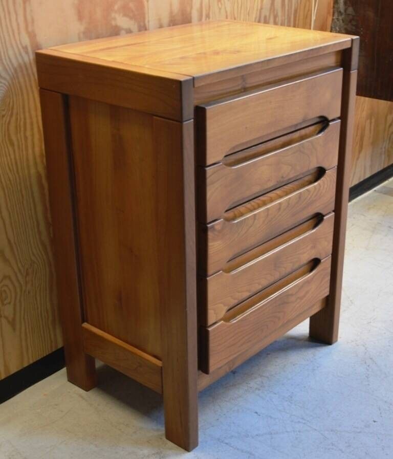 Commode en orme massif, de forme rectangulaire ouvrant à cinq grands tiroirs sur cinq ranges, à prise de tirage en creux
