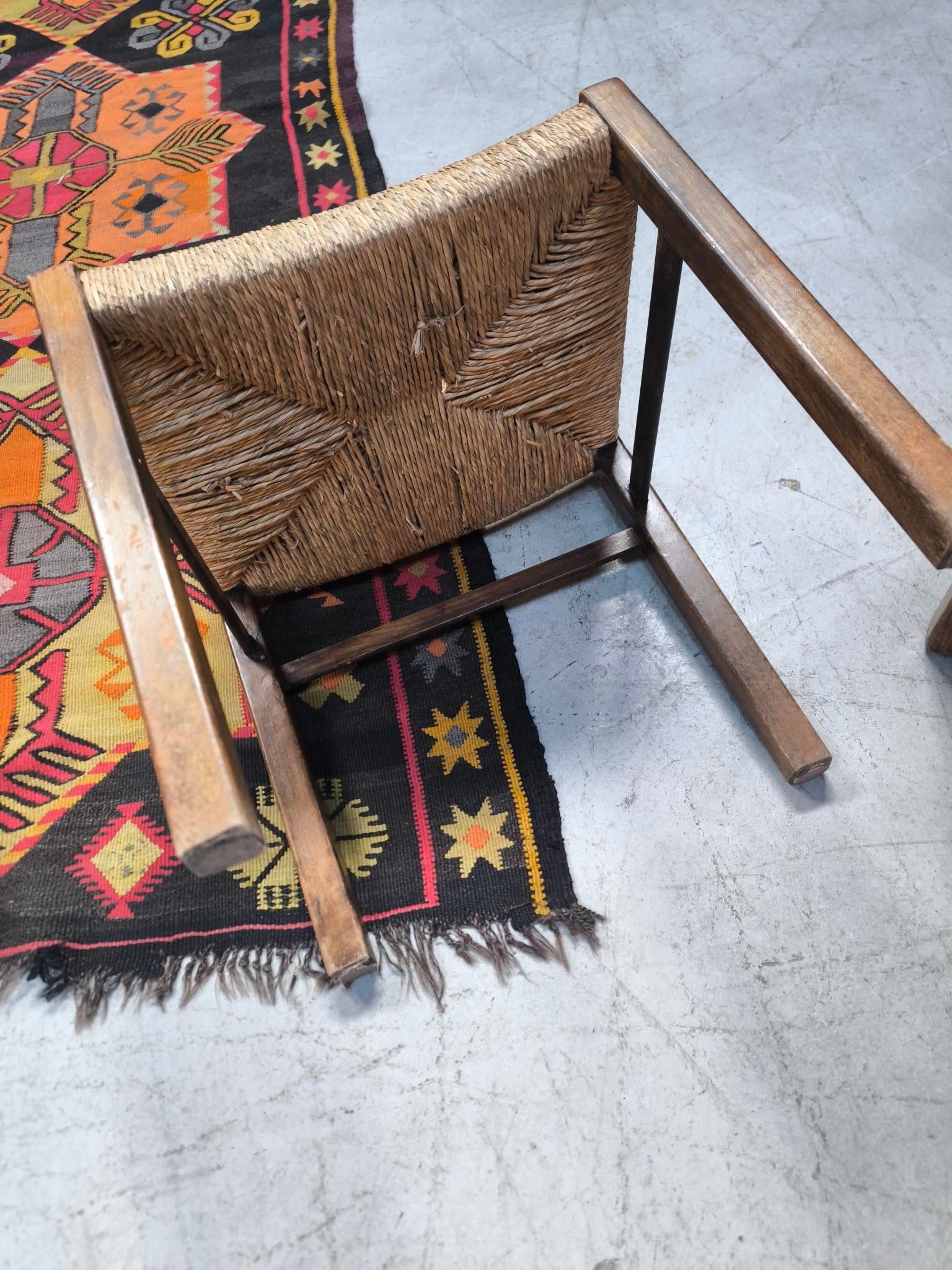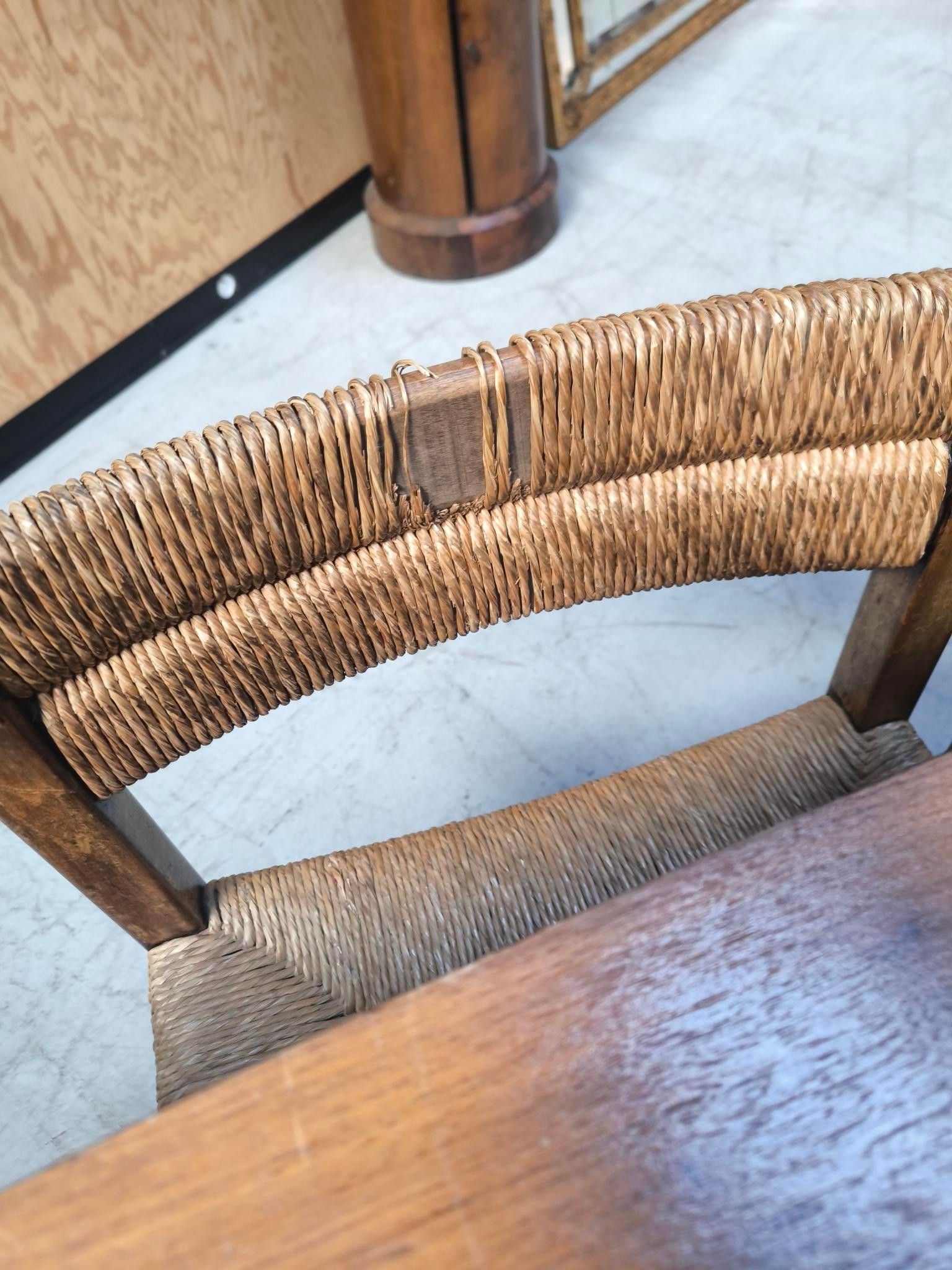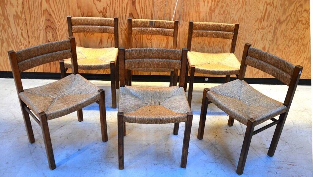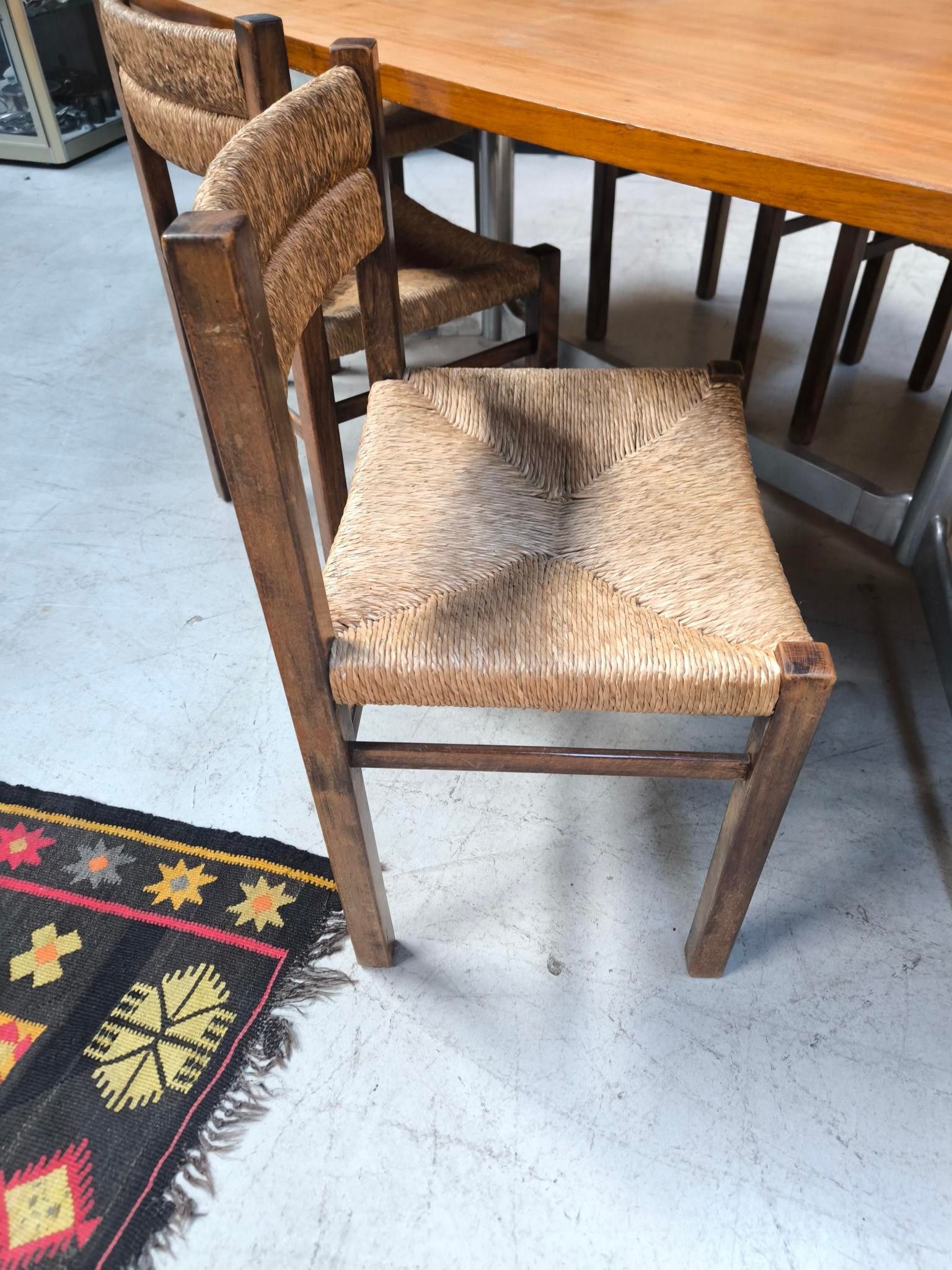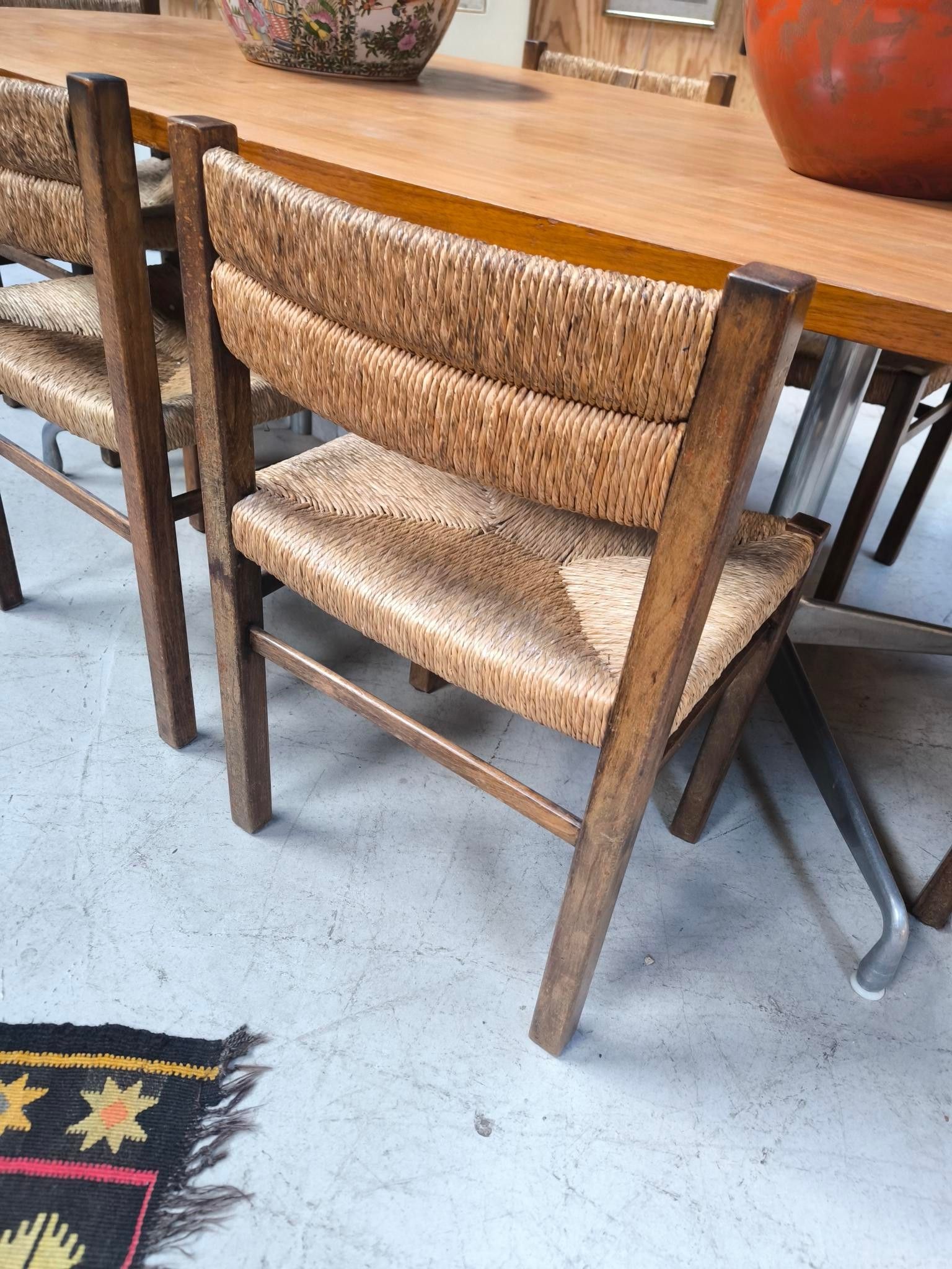 Suite de 6 Chaises en pin et paille pour l’assise et le dossier. Circa 1960