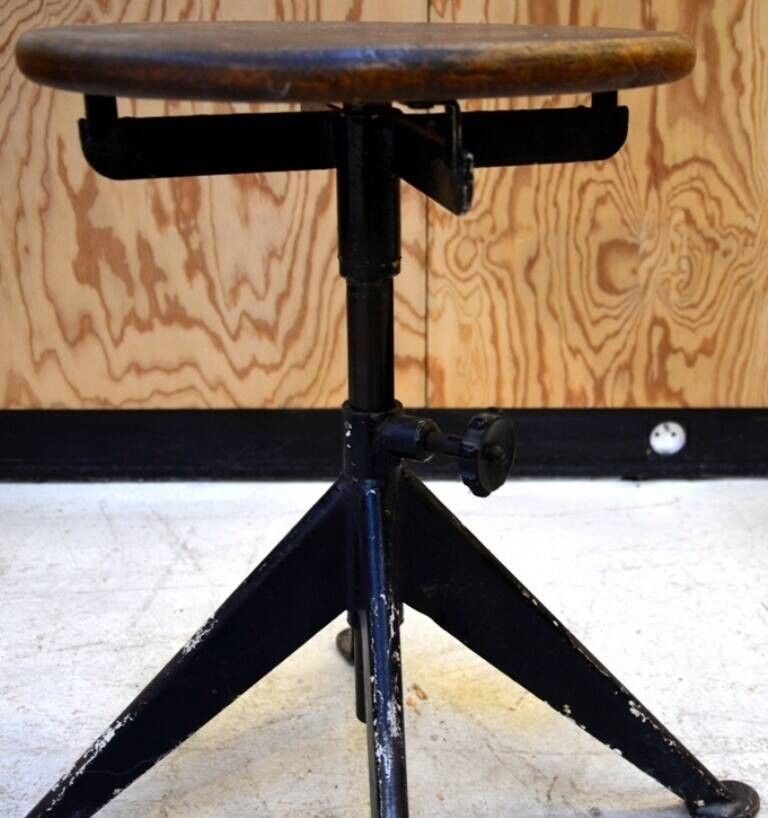 Tabouret en tôle à assise réglable et pieds étoile des année…