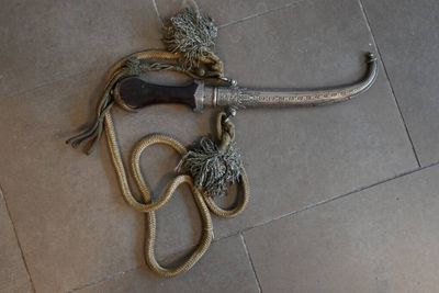 MAROC Poignard lame courbe, fusée en bois sculpté, fourreau …