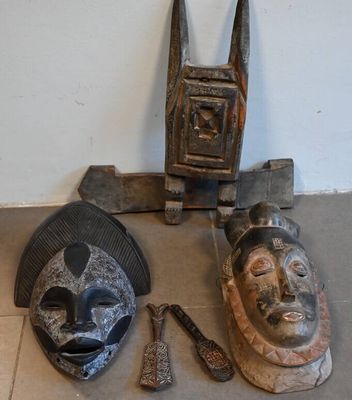 Verrou Dongo en bois sculpté, deux masques style Punu, deux …
