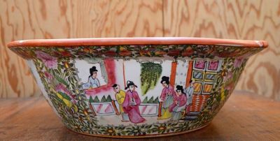 Grande coupe en porcelaine de Canton à décor polychrome de s…