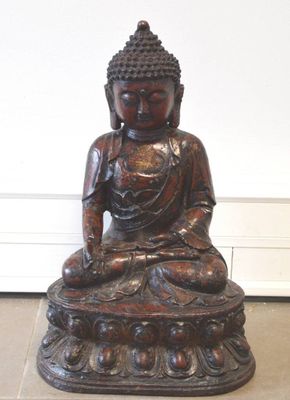 Ancien bouddha en fonte de fer à patine brune Chine Assi sur…