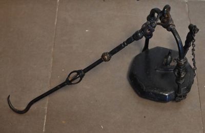 Lampe à huile de mineur dite « rave au coq » En fer forgé, A…