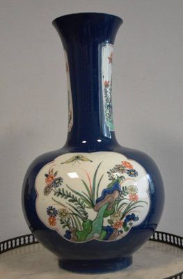 Vase en porcelaine à fond poudré bleu à décor de fleurs dans…