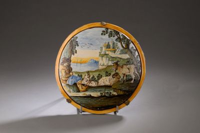 CASTELLI, XIXème. Tondo en faïence à décor d'une scène pasto…