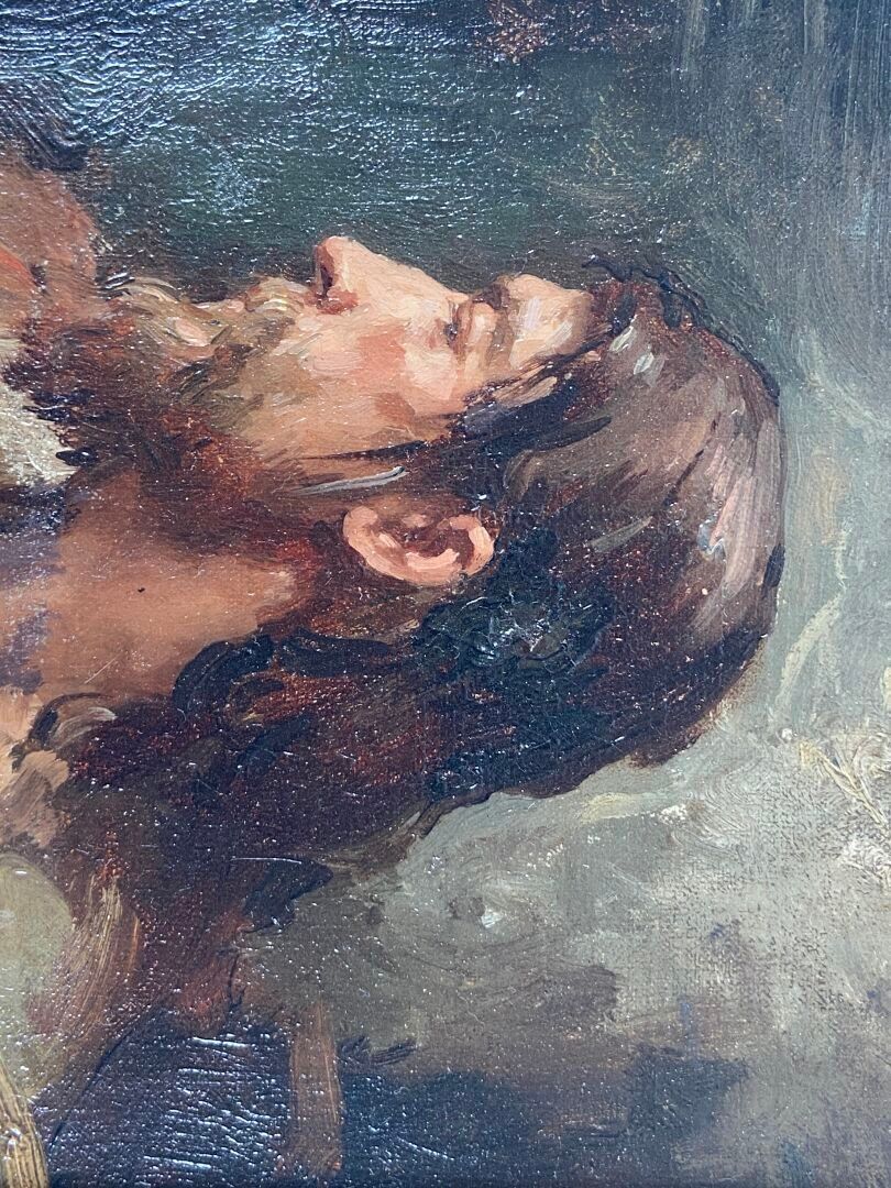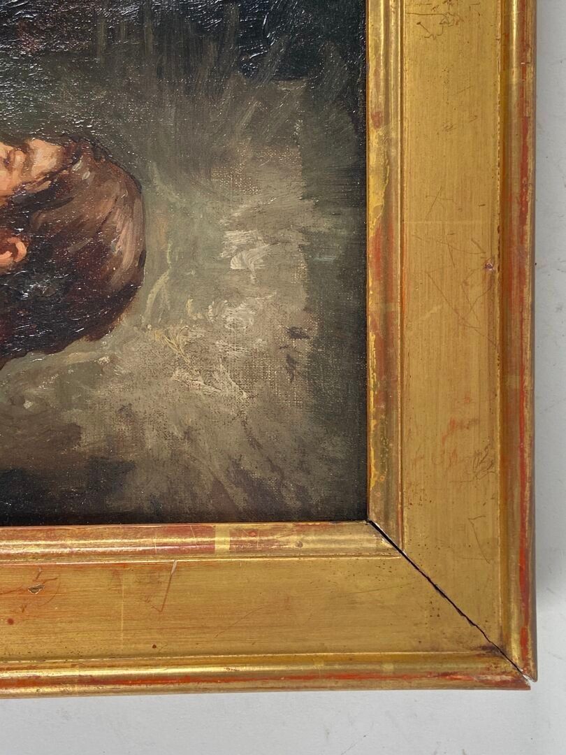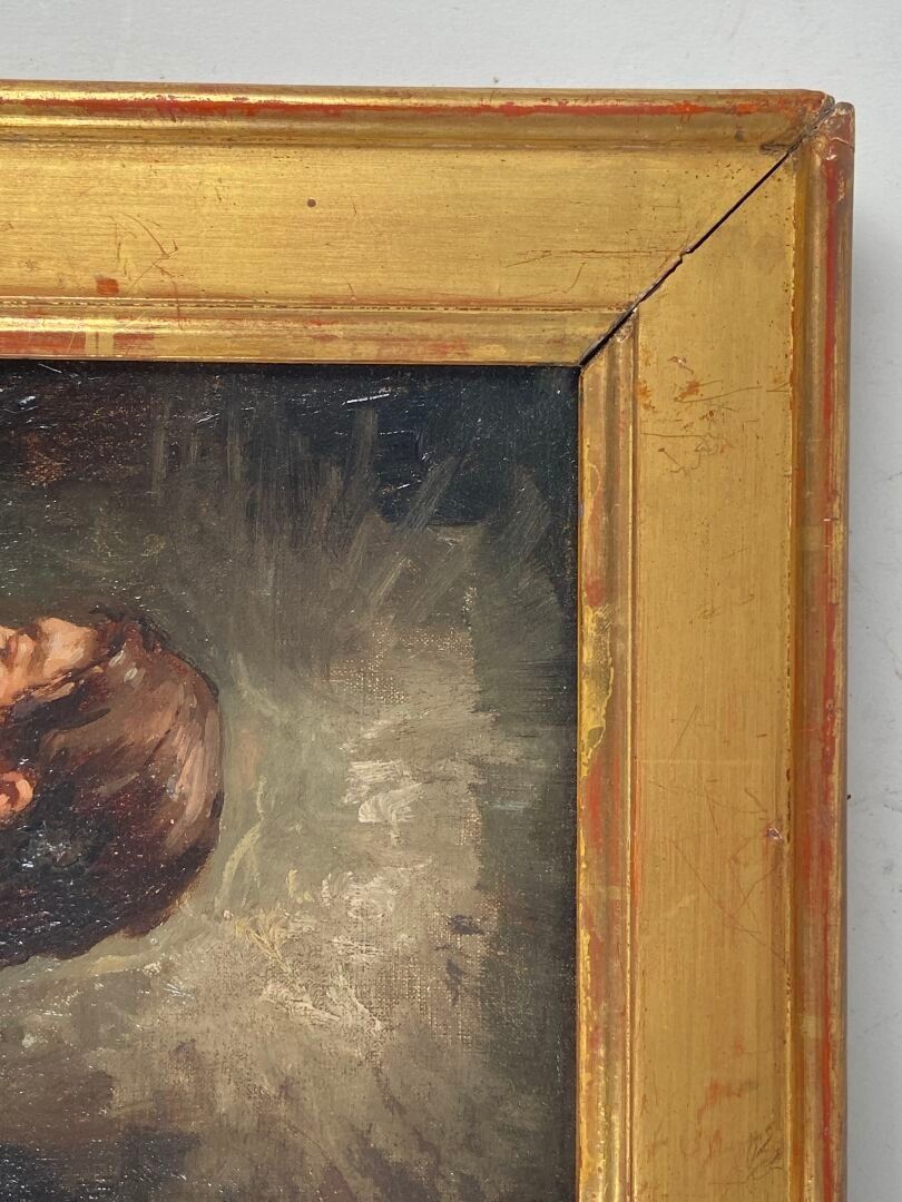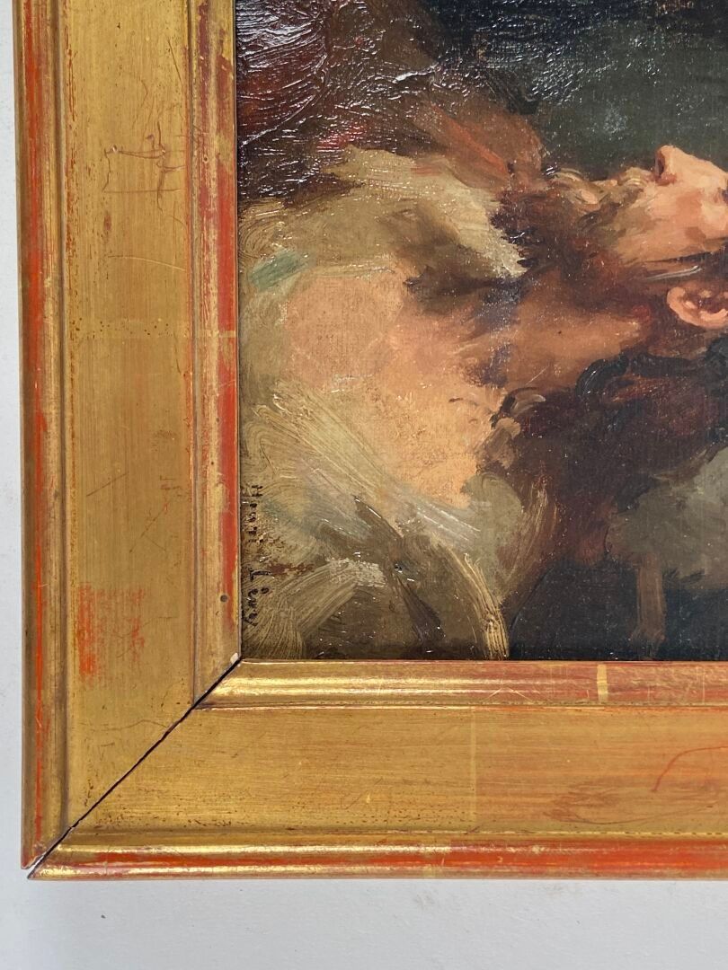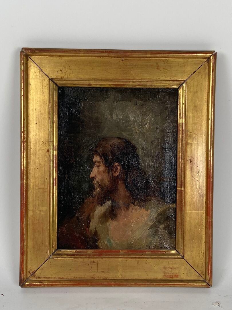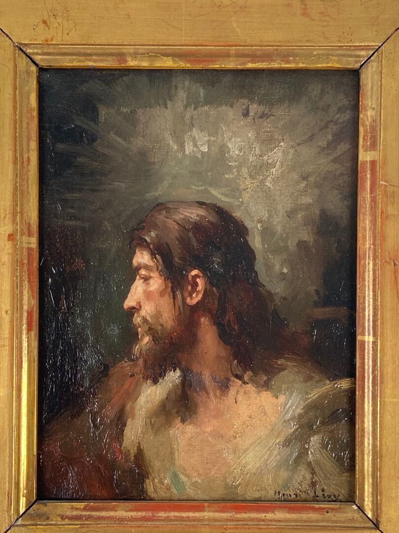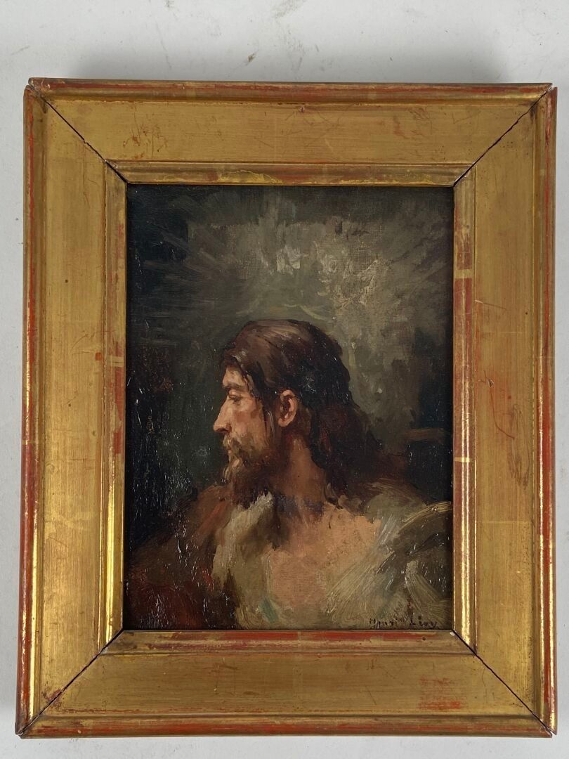 Henri-Léopold LEVY (1840-1904). Christ de profil. Huile sur toile signée en bas à droite. 22 x 16 cm. (petites restaurations).