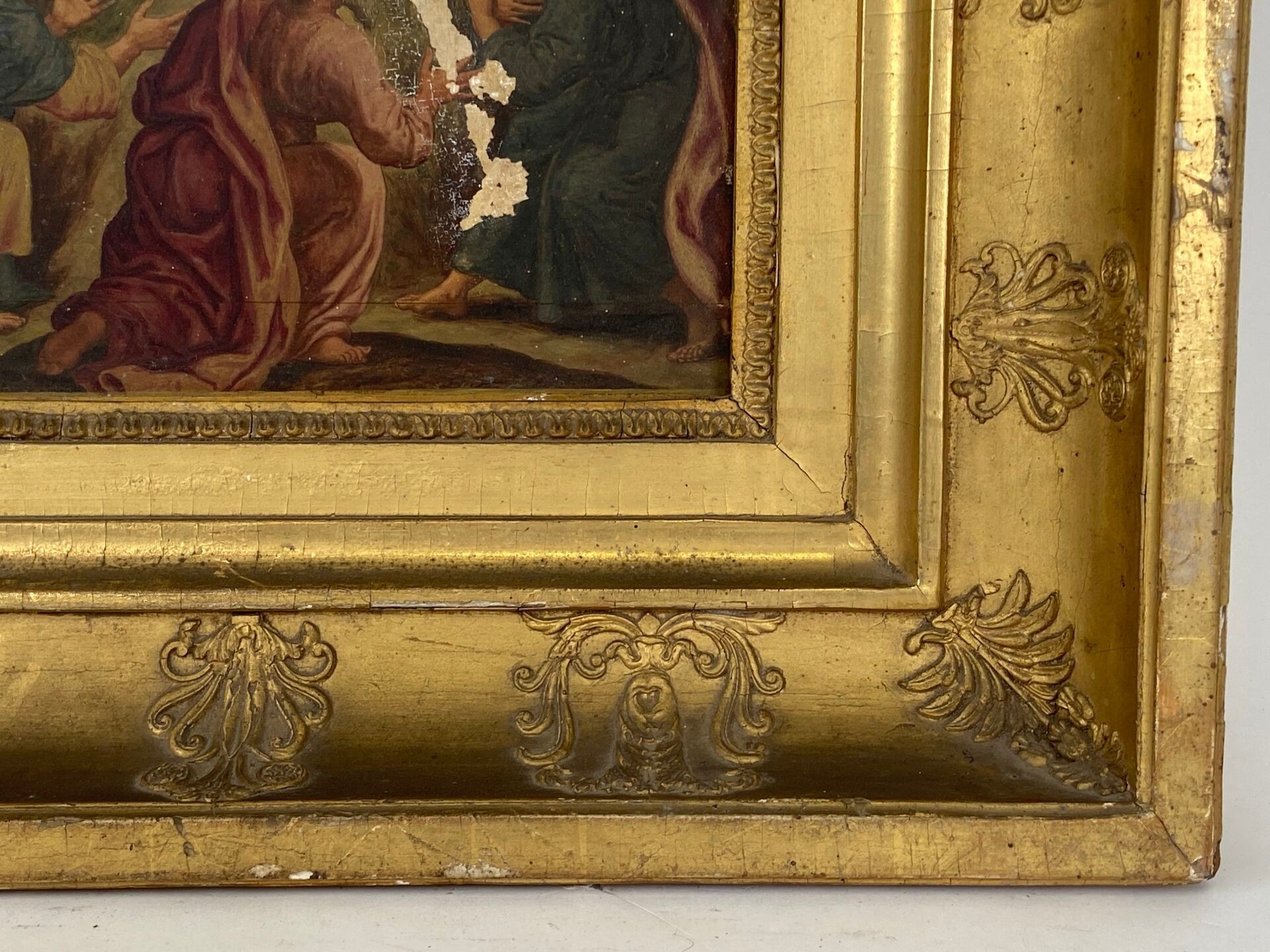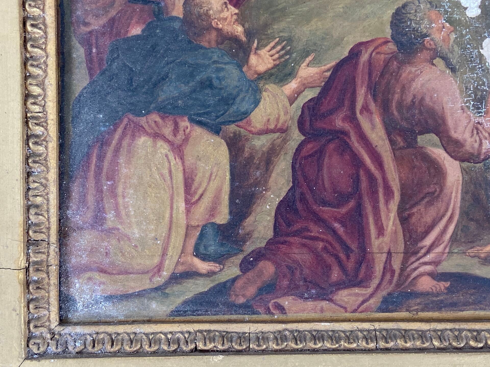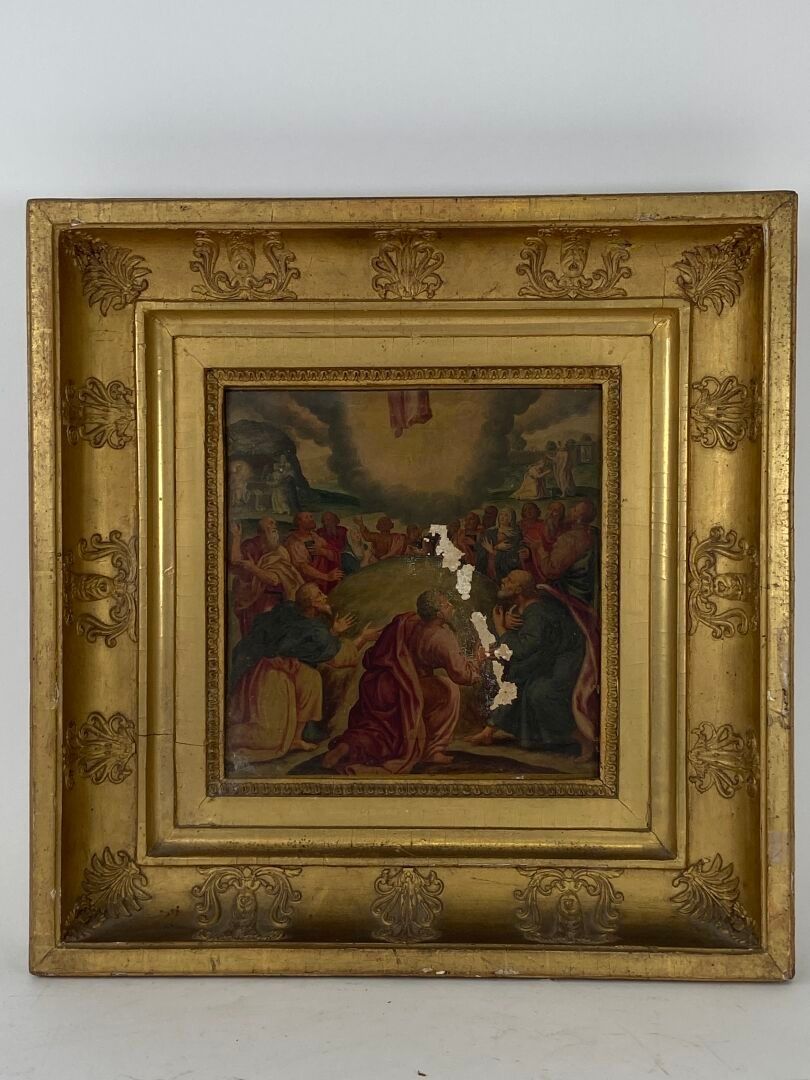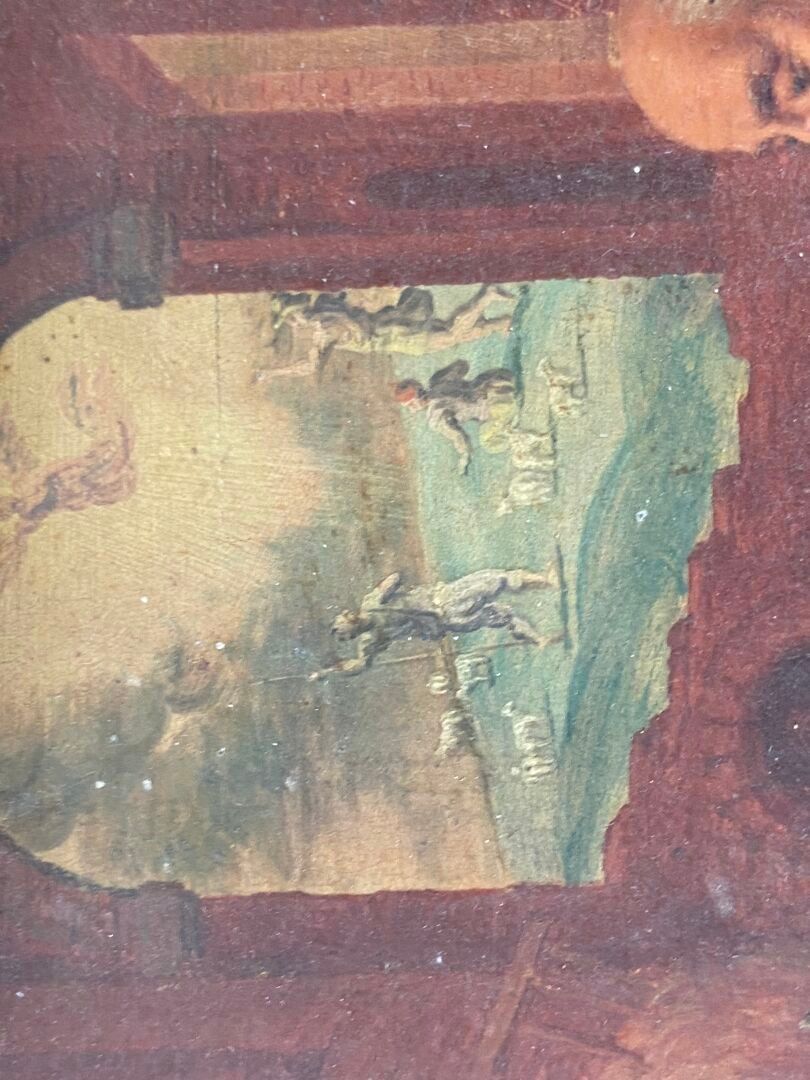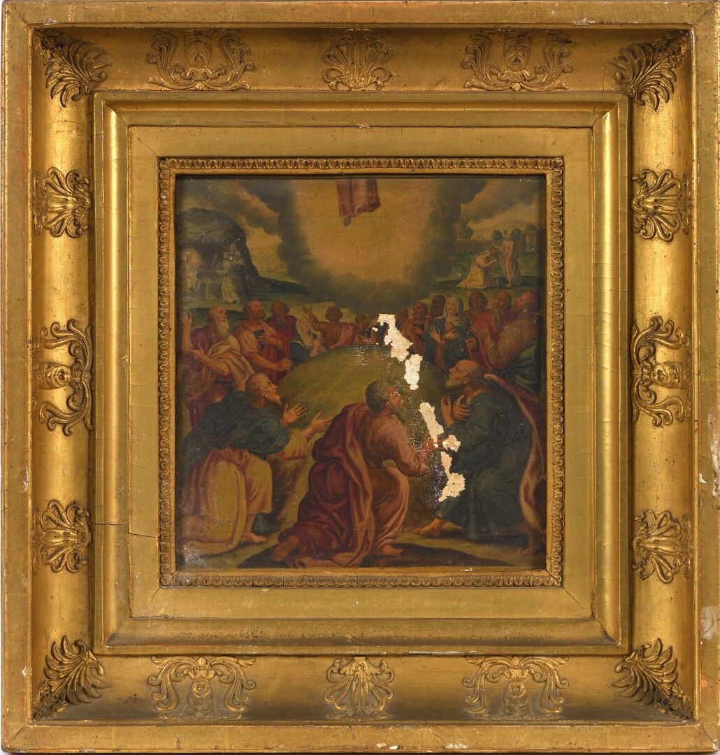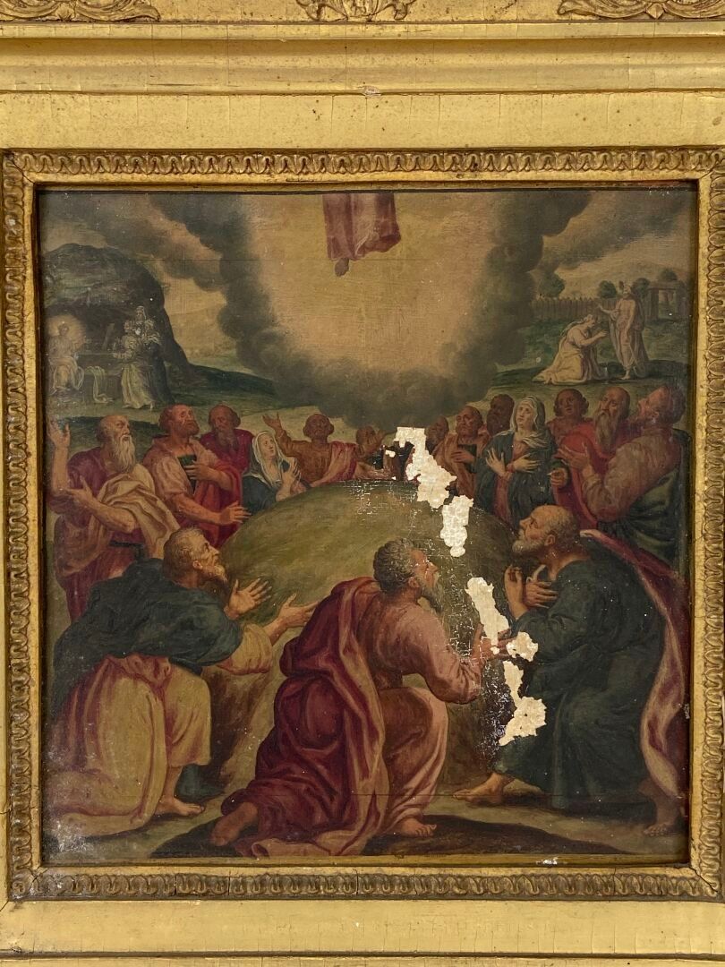 Paire d'huiles sur panneau, probablement des panneaux décoratifs de mobilier liturgique.