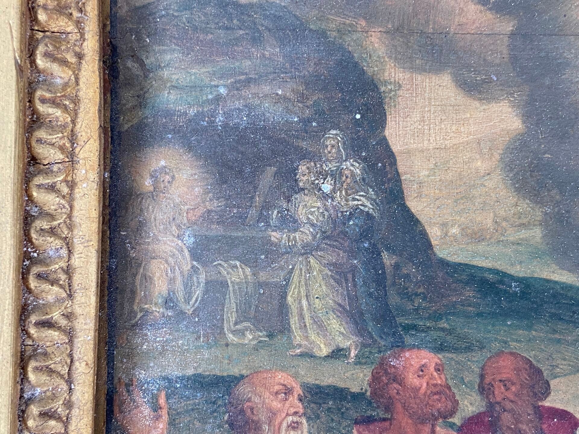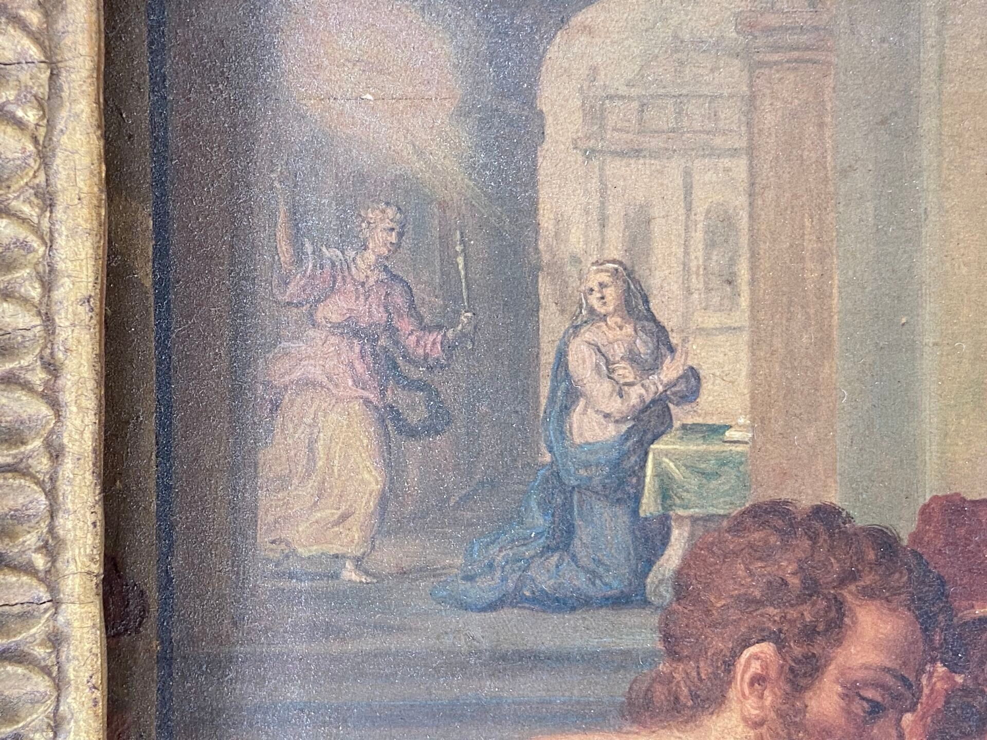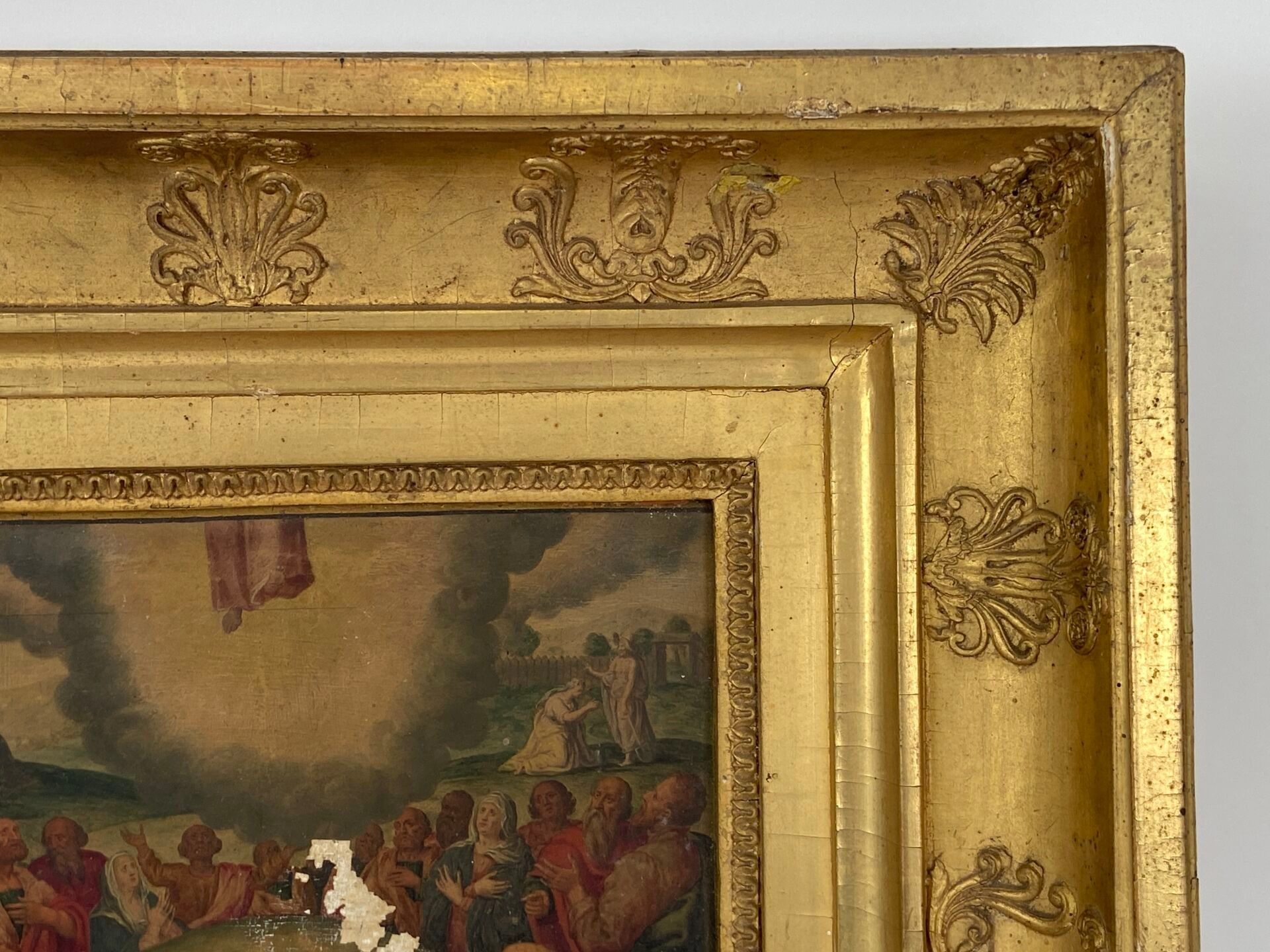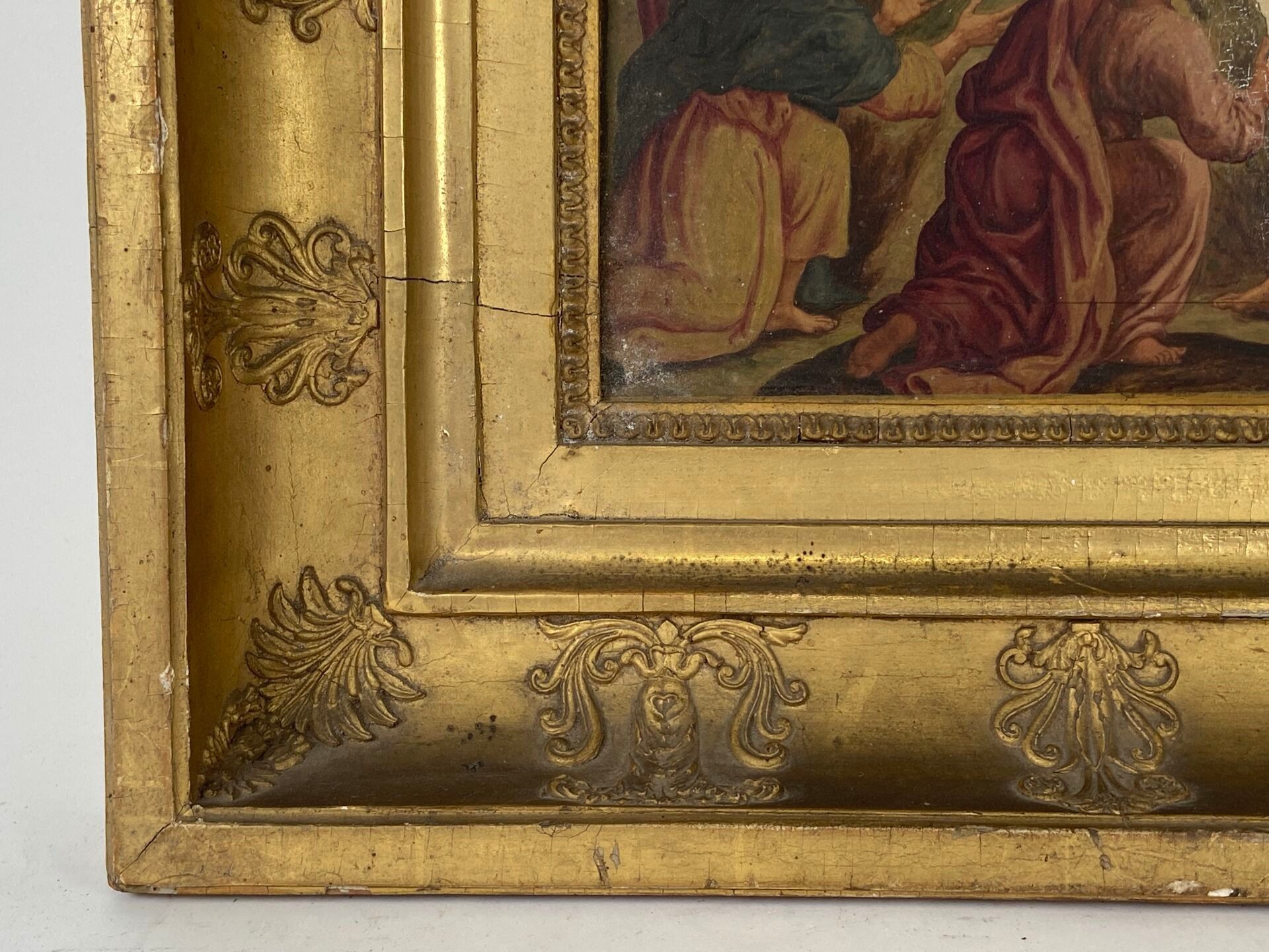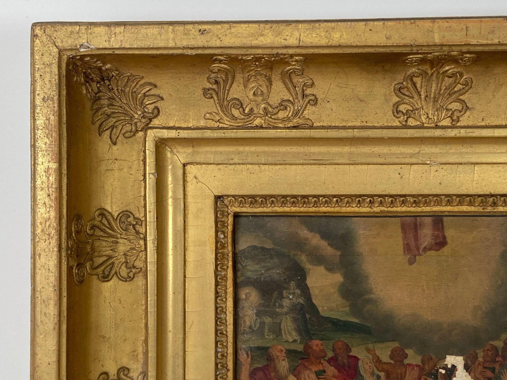Paire d'huiles sur panneau, probablement des panneaux décoratifs de mobilier liturgique.