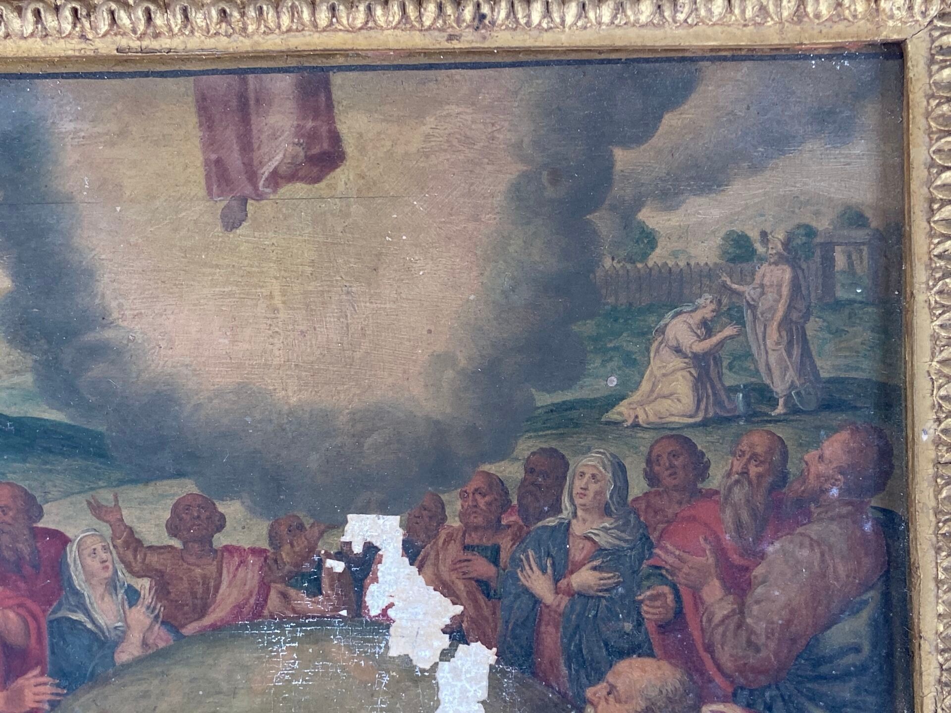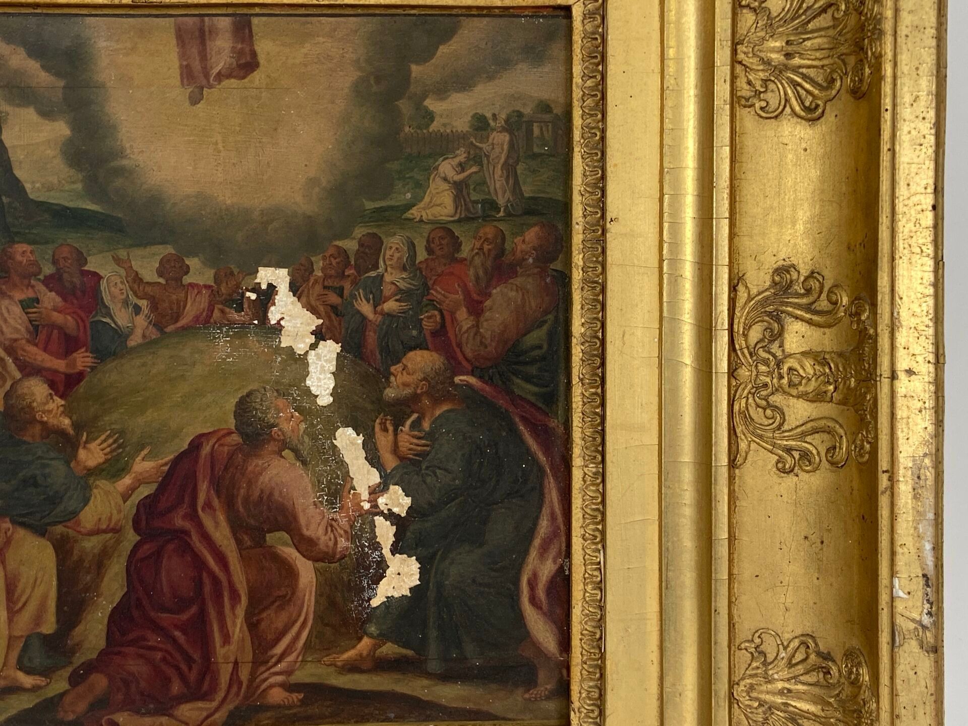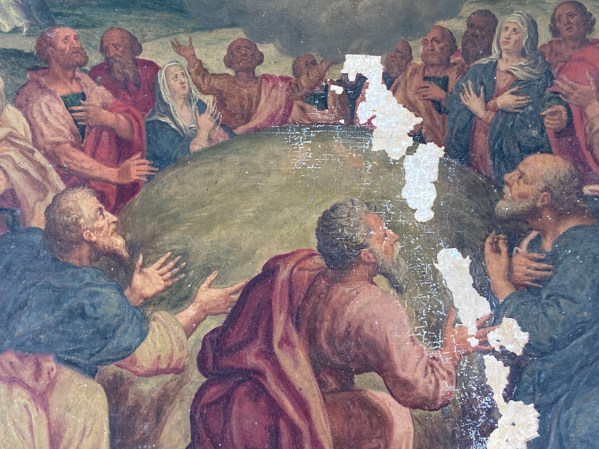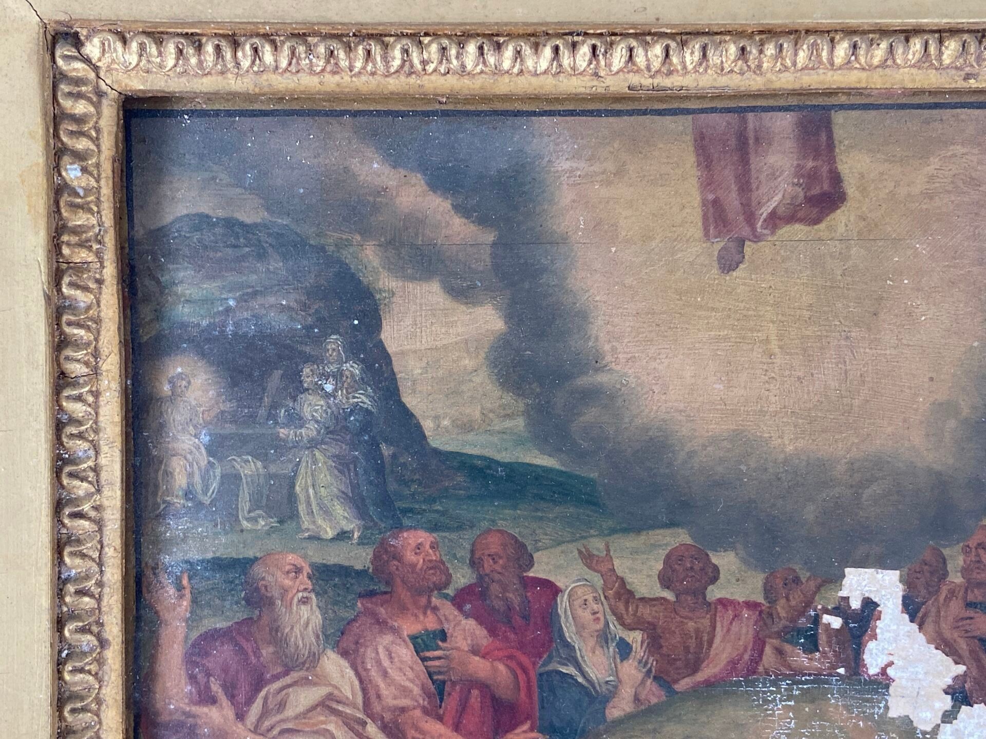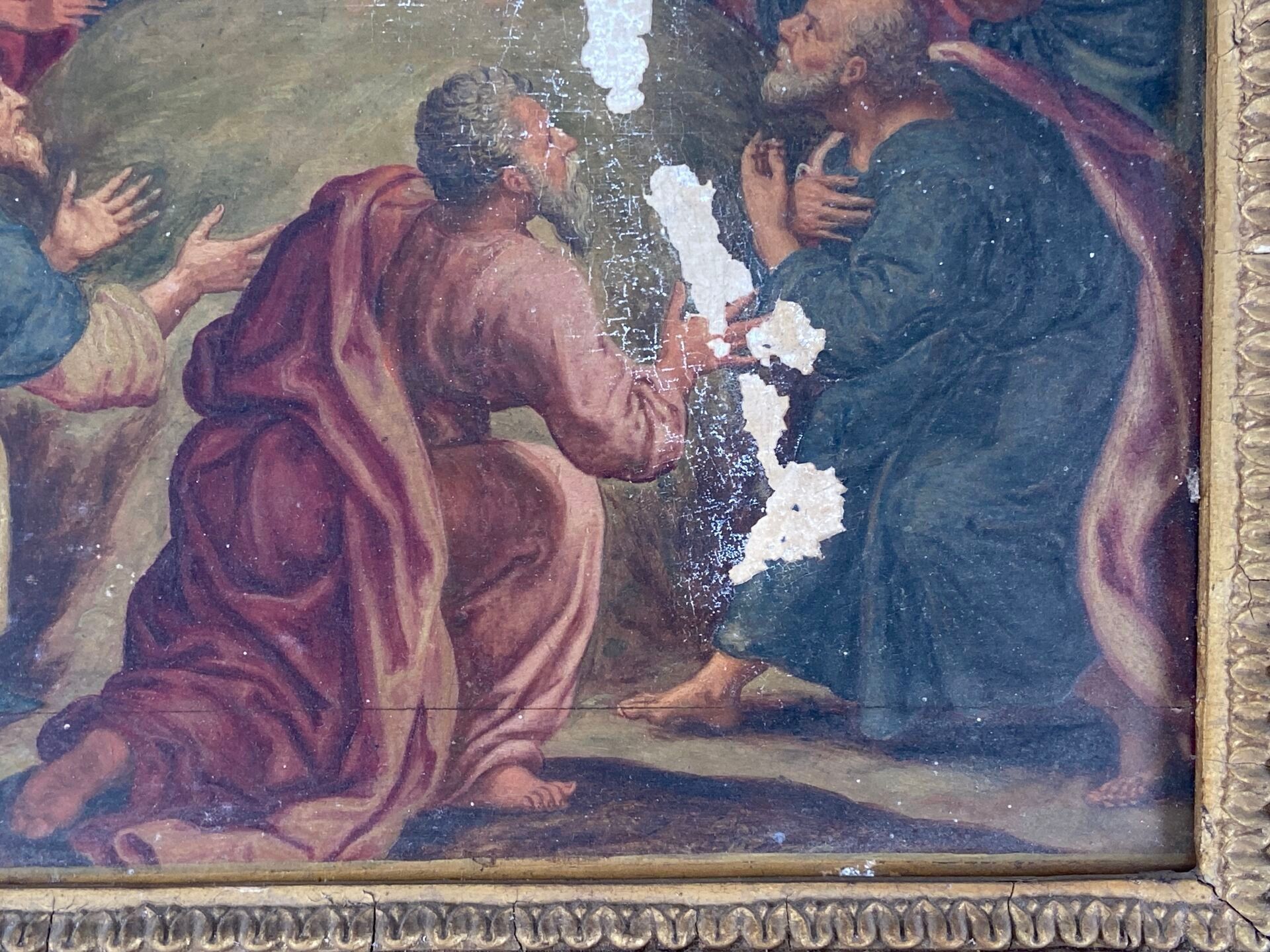 Paire d'huiles sur panneau, probablement des panneaux décoratifs de mobilier liturgique.