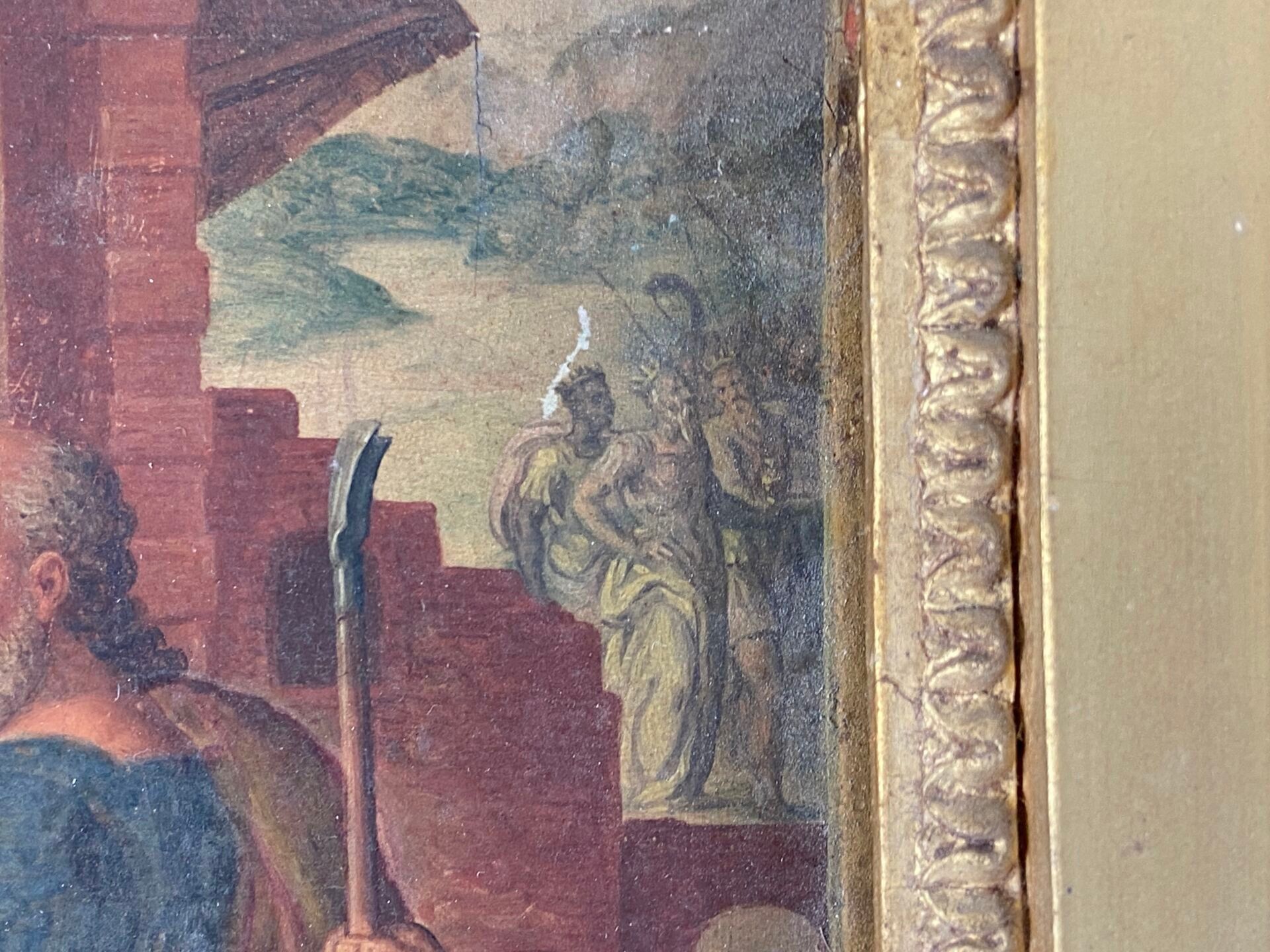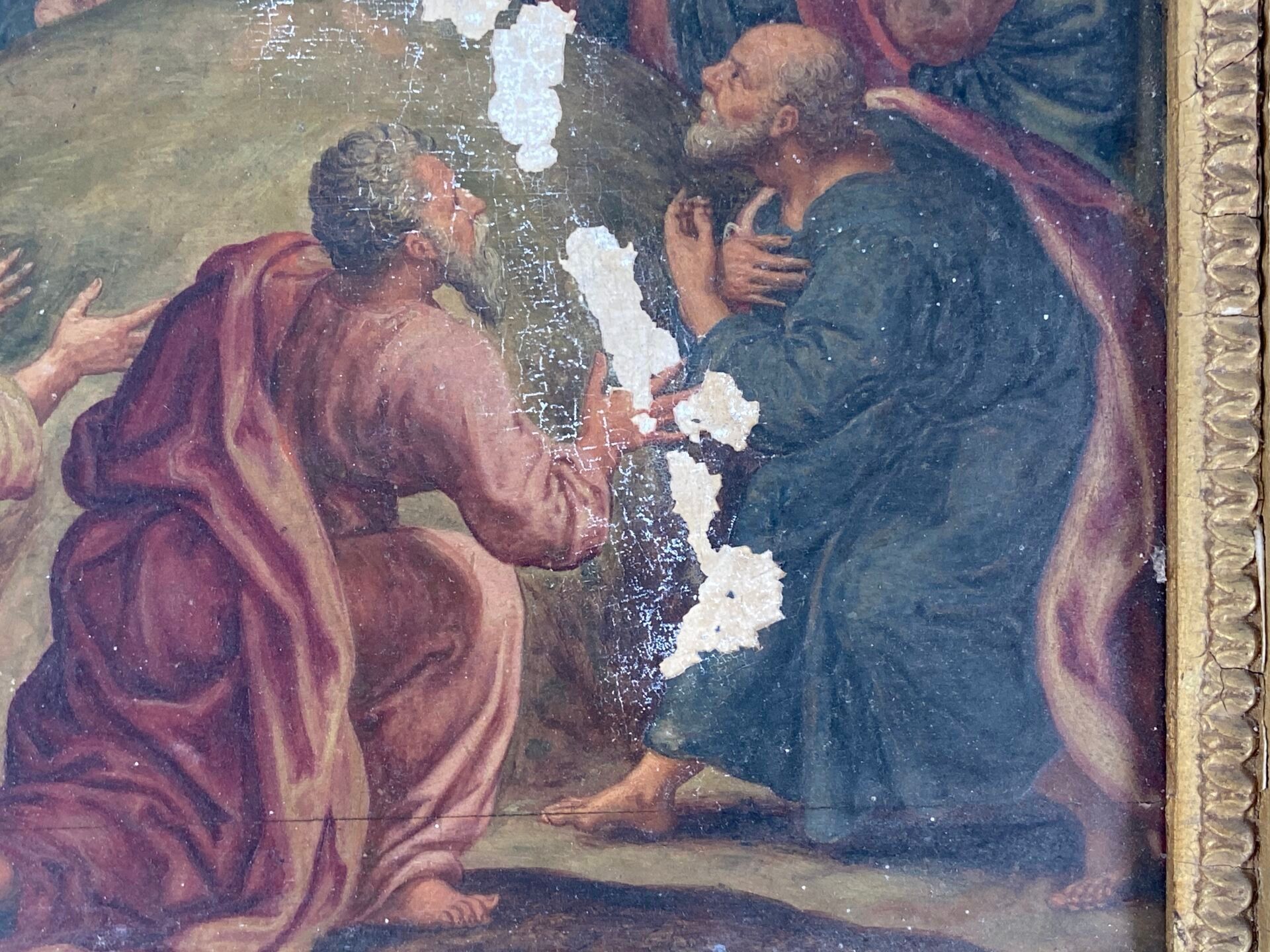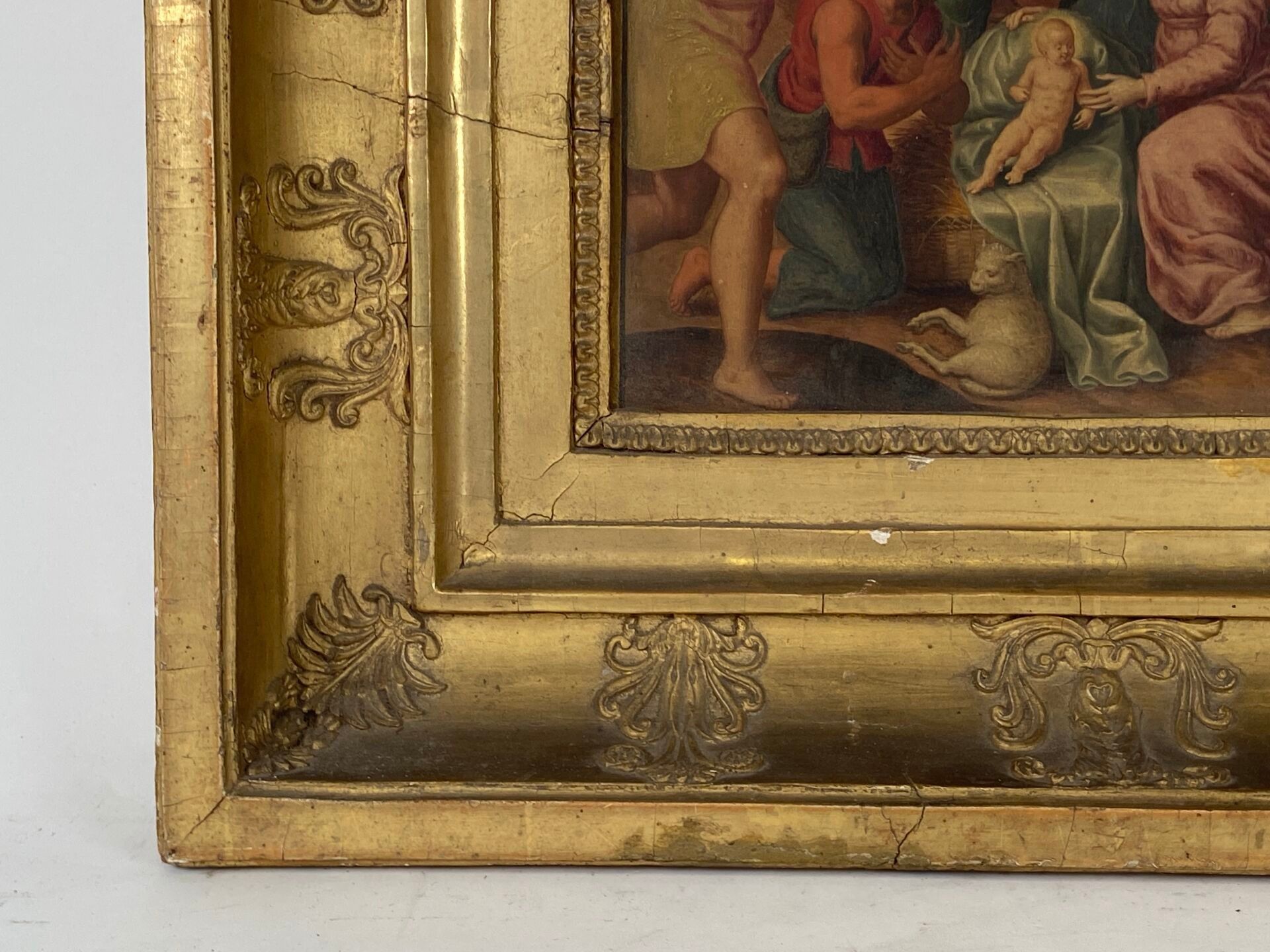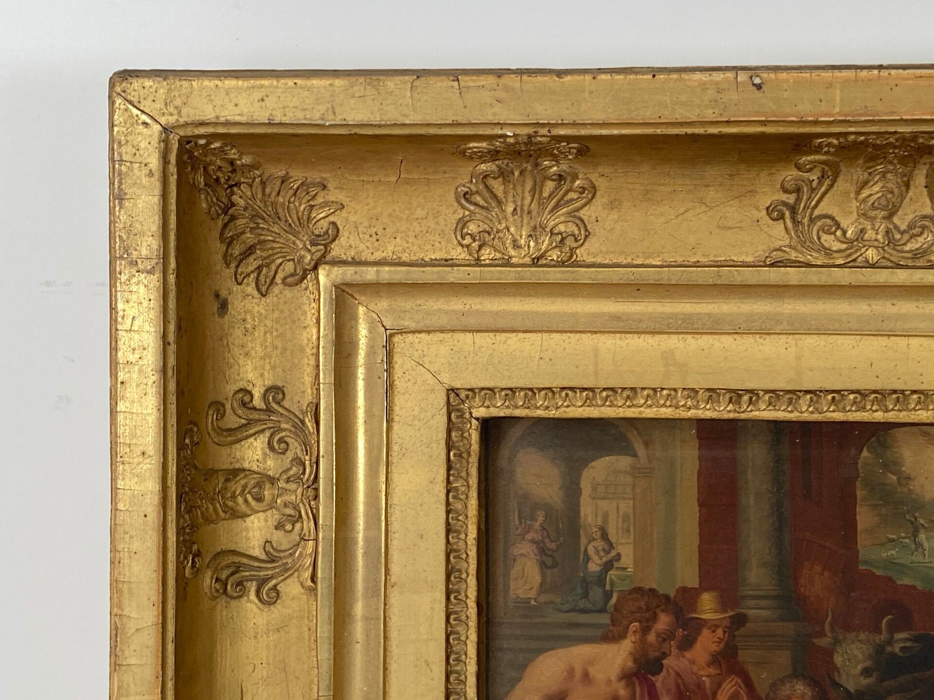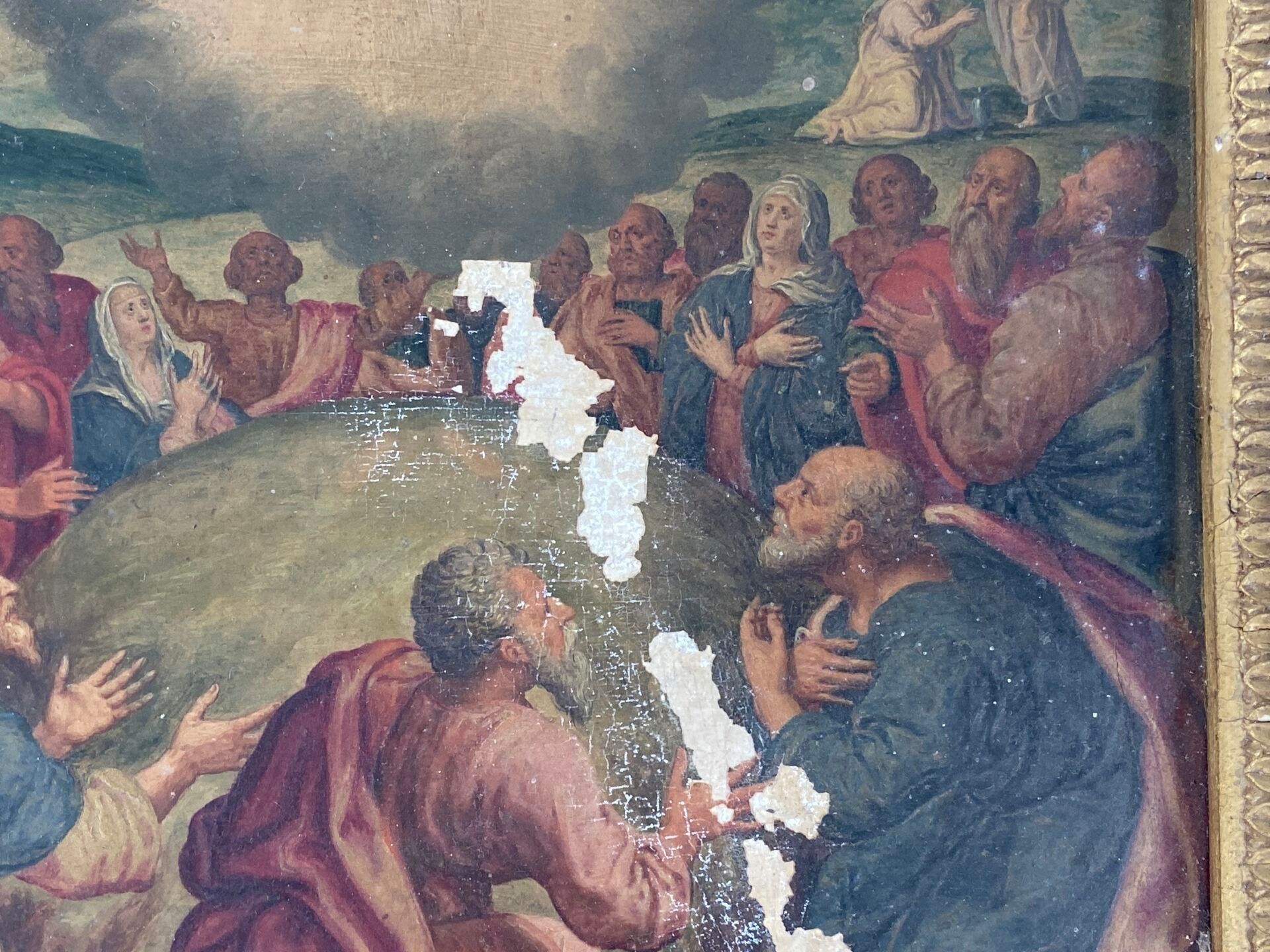 Paire d'huiles sur panneau, probablement des panneaux décoratifs de mobilier liturgique.