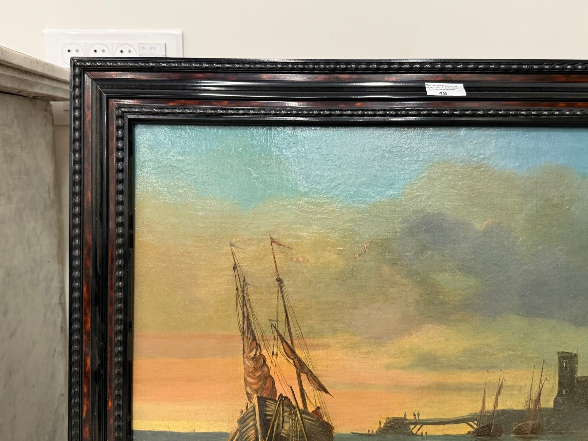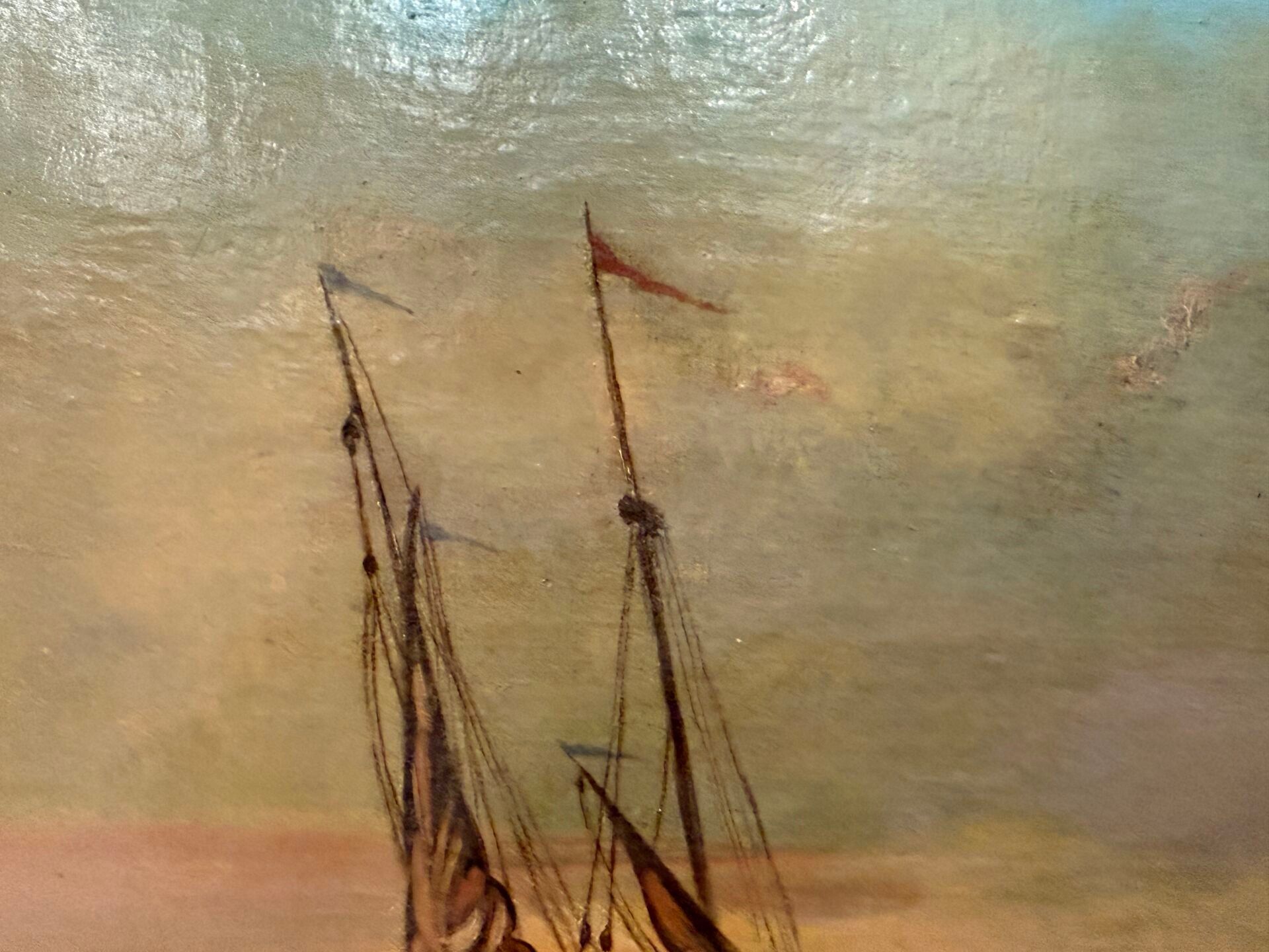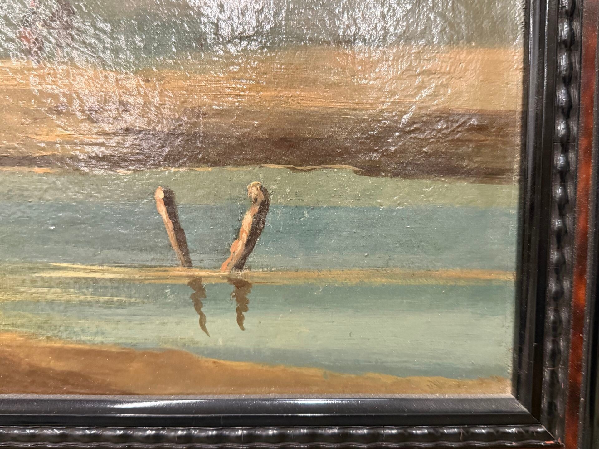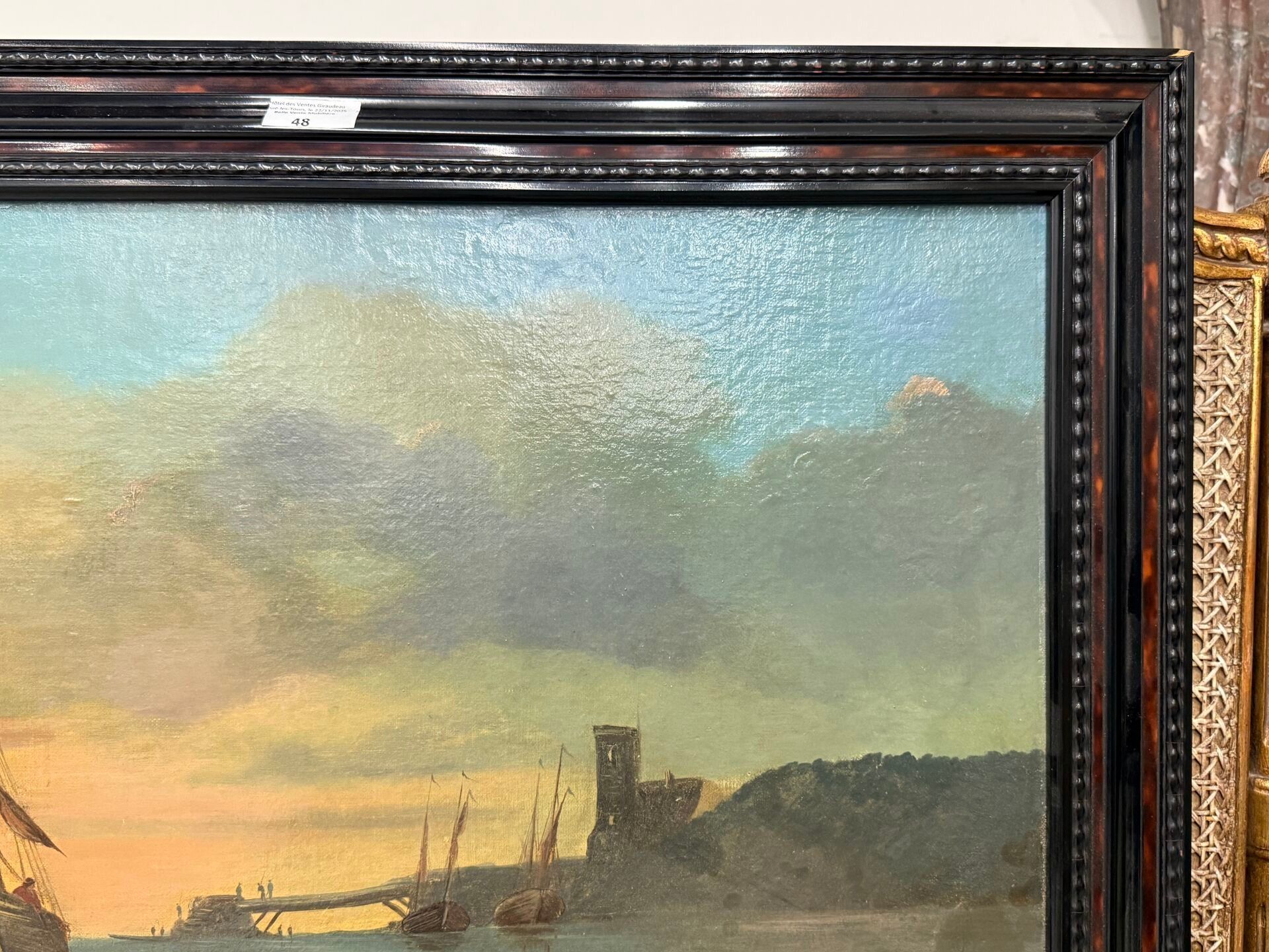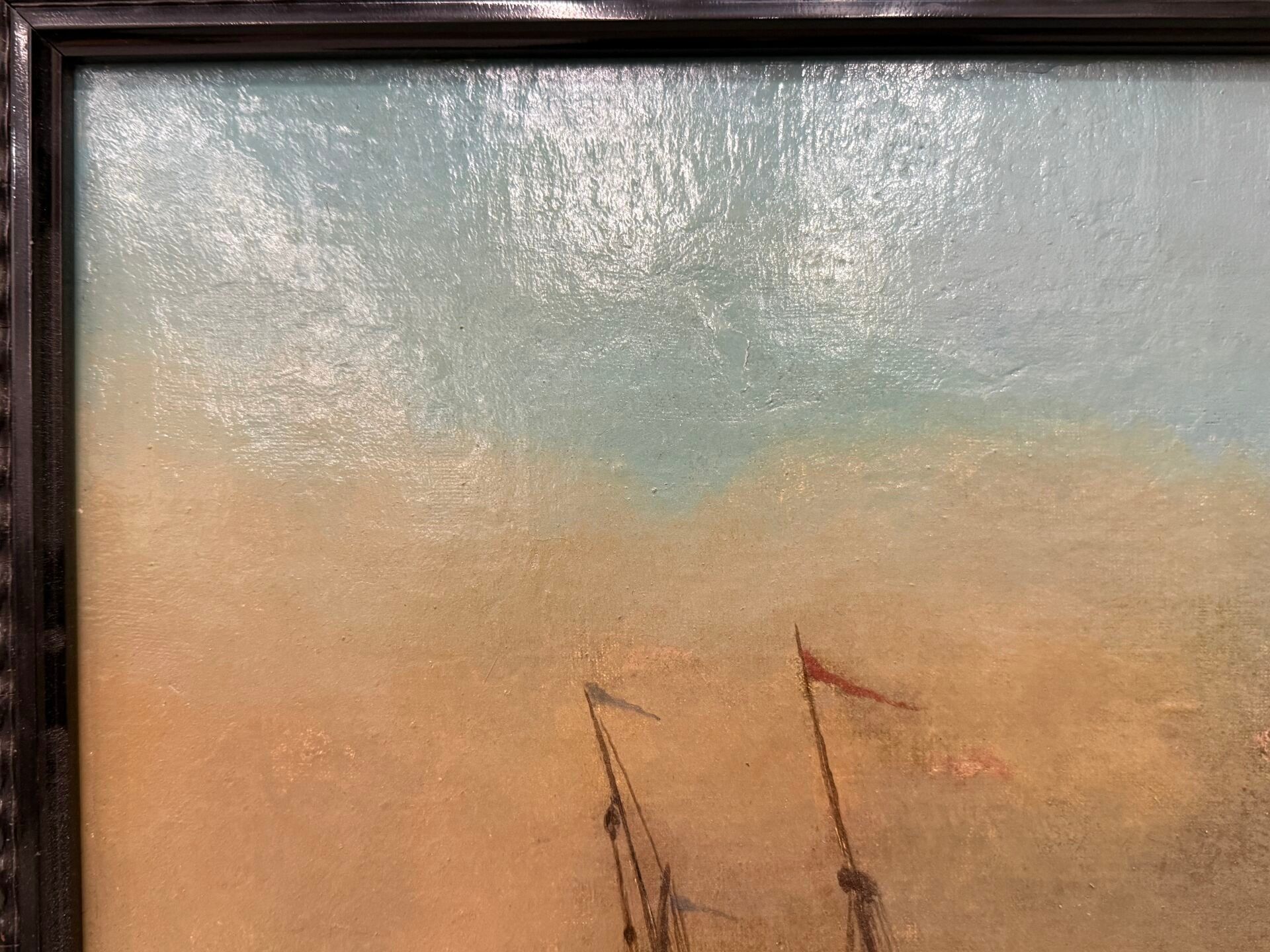 École italienne fin XVIIIe, début XIXe. Pêcheurs s'afférant sur la grève. Huile sur toile. 48 x 64 cm. (rentoilage).