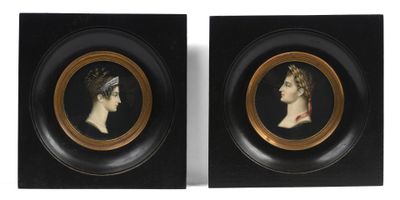 École française fin XIXe. Portraits de Napoléon et Joséphine…