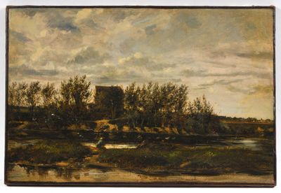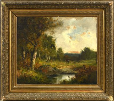 Henriette MORIZOT (XIXe). Paysage animé dans le goût de l'éc…