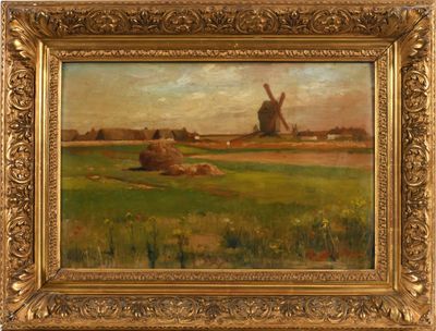 Eugène BARDEN (XIX-XXe). Moulin et meule de foin.