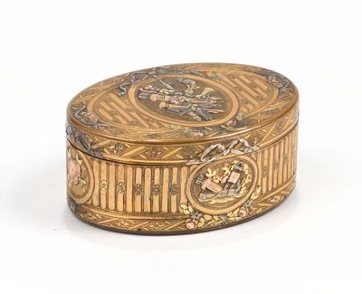 Tabatière ovale en pomponne, argent et cuivre façon trois or…