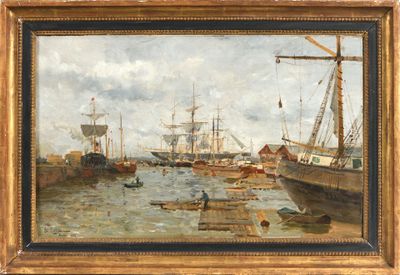 Hervé RICHARD (né en 1952). Marée basse au Croisic, "Bar Ave…