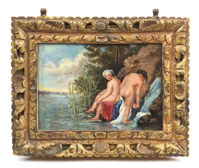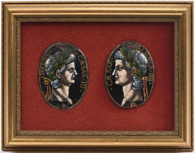 LIMOGES, XIXe. Deux plaques ovales en cuivre et émail polych…