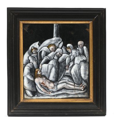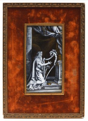 LIMOGES, XVIIe. Plaque rectangulaire en cuivre et émail poly…