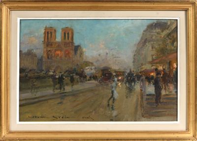 Georges STEIN (1864-1917). Boulevard animé devant Notre-Dame…