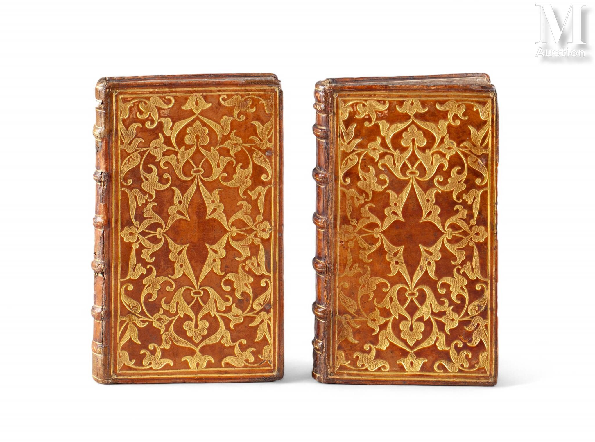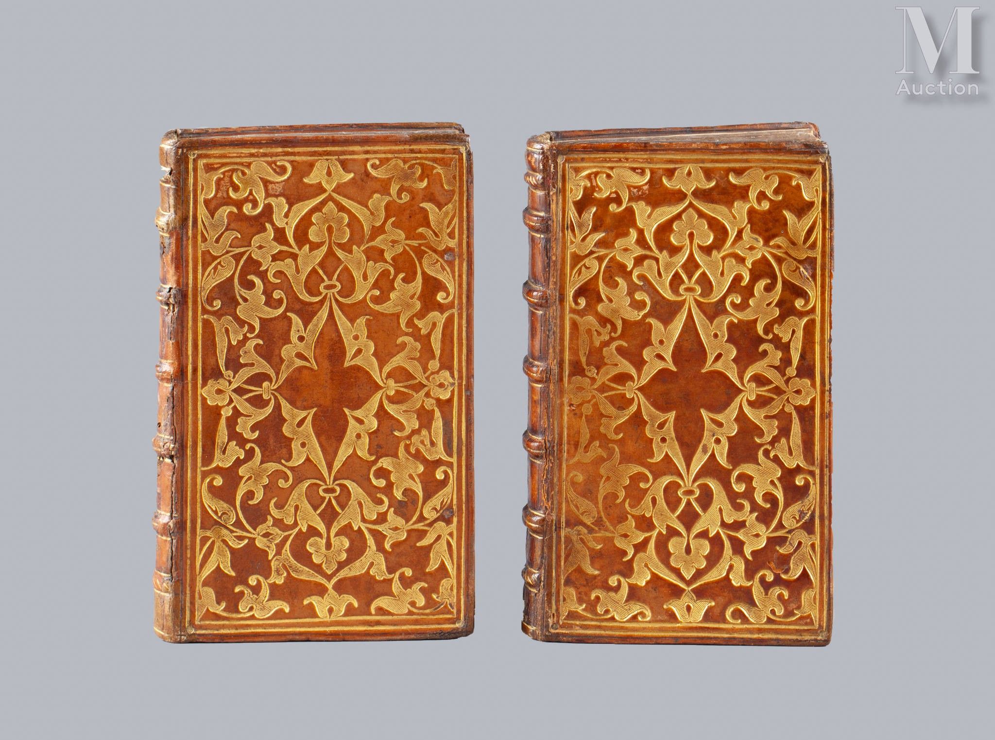 [Opera]. De philosophia… Paris, Robert Estienne, 1543. 2 volumes in-8, veau fauve, plaque ornée de grands fers végétaux azurés s'agençant autour d'un grand cartouche central en réserve, dos orné, tranches dorées et ciselées (Reliure de l'époque).