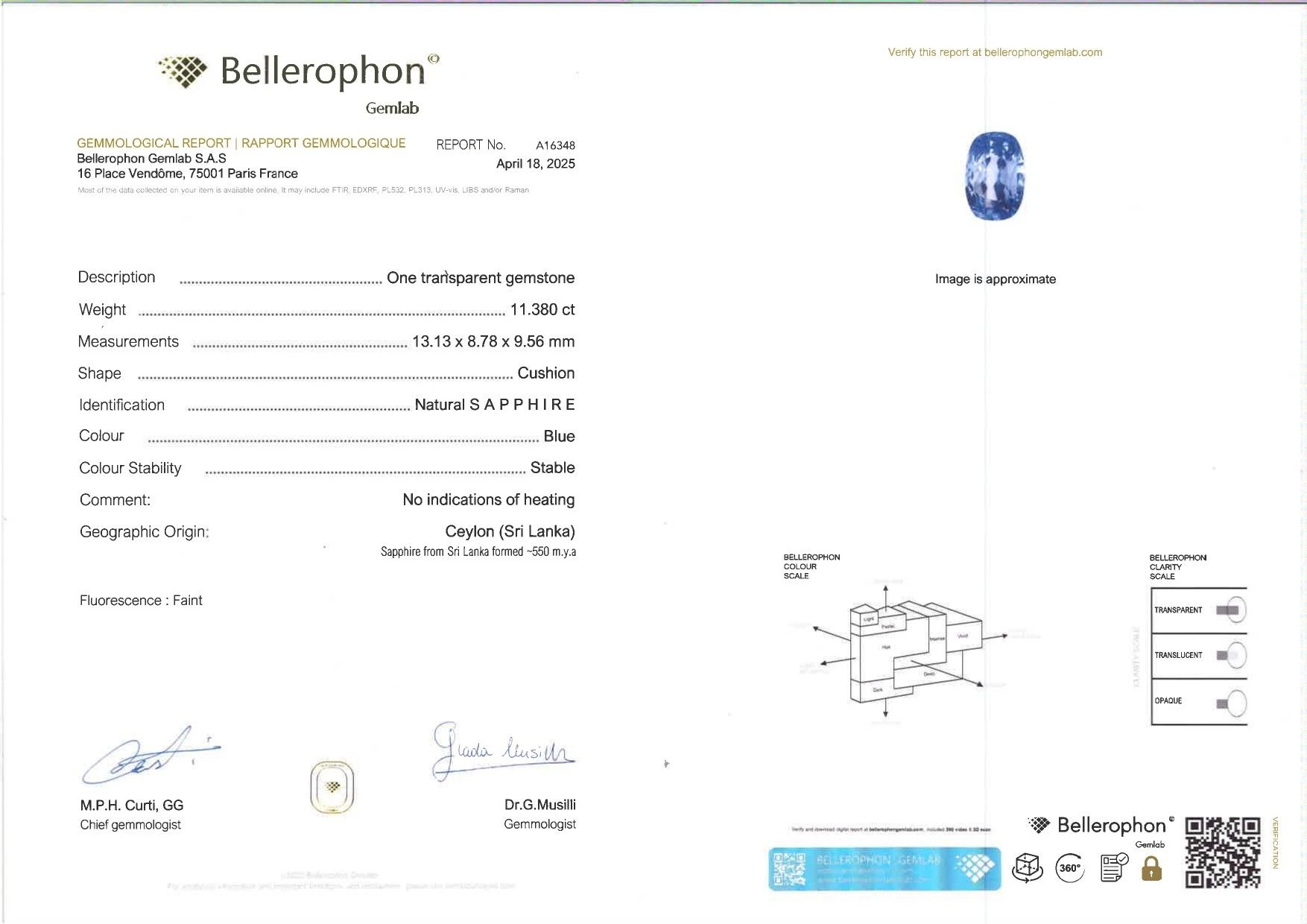 Bague en or gris 750°/°° (18K), sertie d'un exceptionnel saphir naturel de Ceylan taille coussin de 11.38 ct, épaulé de diamants baguettes, dans le goût de l'Art Déco. Rapport d'analyse de laboratoire: "Pas d'indication de traitement thermique". 5.7 g. TDD 52.5. Poinçon tête d'aigle.