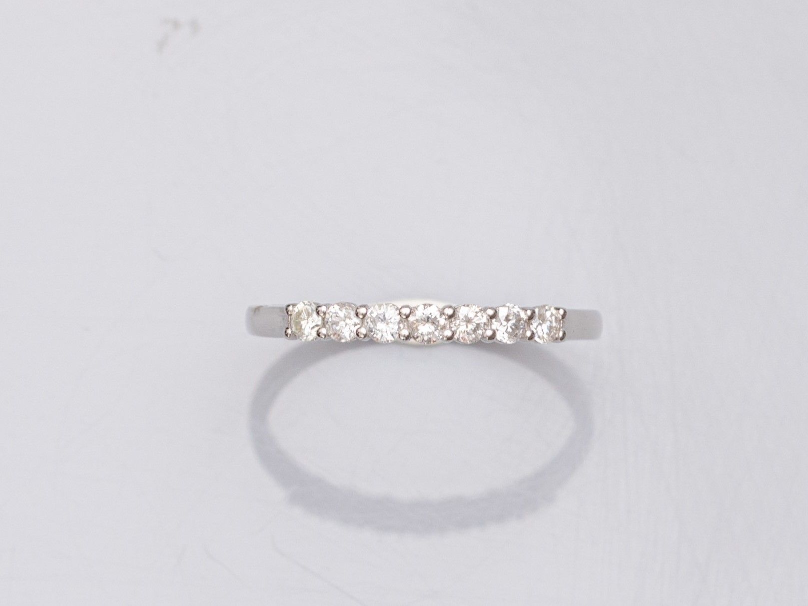 Alliance en platine, sertie de sept diamants taille brillant. 1.5 g. TDD 54. Largeur: 2.2 mm. Poinçon tête de chien.