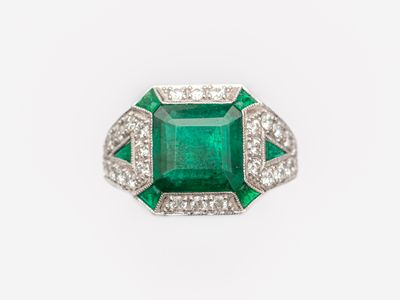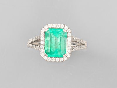 Bague en or gris 750°/°°(18K) , sertie d'une émeraude rectan…