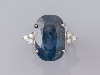 Bague en or gris 750°/°° (18K), sertie d'un exceptionnel sap…