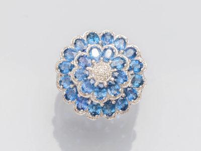 Grande bague fleur ronde en or gris 750°/°°(18K), sertie de …