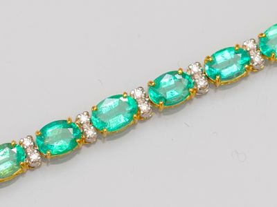 Bracelet rivière en or deux tons 750°/°°(18K), serti d'émera…