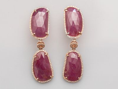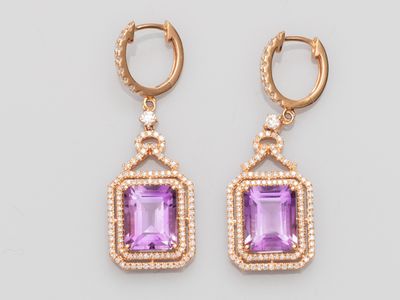 Paire de boucles d'oreilles en or rose, serties d'améthystes…