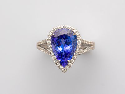 Bague en or gris 750°/°° (18K), sertie d'une belle tanzanite…