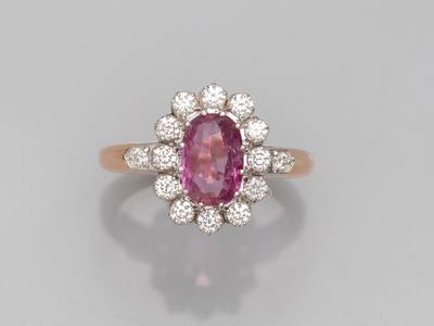 Bague en or deux tons 750°/°°(18K) , sertie d'un saphir rose…