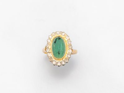 Bague en or jaune 750°/°° (18K), à décor géométrique, sertie…