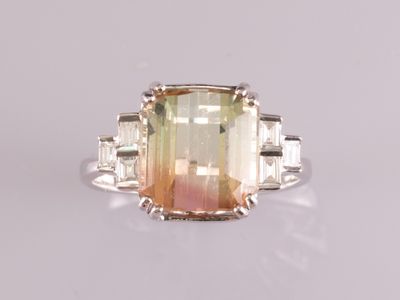 Bague en or gris 750°/°°(18K) , sertie d'une tourmaline poly…