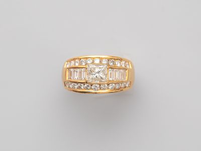 Bague en or jaune 750°/°° (18K), sertie d'un beau diamant ta…