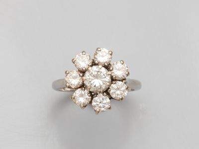 Bague fleur en platine et or gris 750°/°°(18K) , sertie d'un…