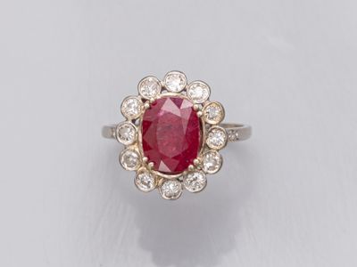 Bague en or deux tons 750°/°°(18K), sertie d'un beau rubis c…