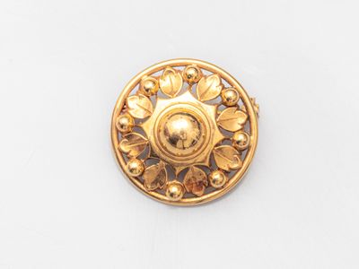 Broche ronde ajourée en or jaune 750°/°° (18K), à décor de f…