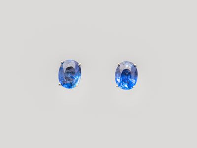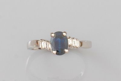 Bague en or gris 750°/°°(18K) , sertie d'un saphir ovale fac…
