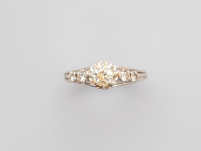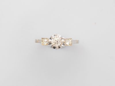Bague ancienne en or gris 750°/°° (18K), sertie d'un diamant…