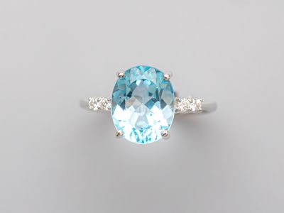 Bague en or gris 750°/°° (18K), sertie d'une topaze bleue ci…