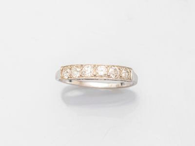 Bague en or gris 750°/°° (18K), sertie de six diamants taill…