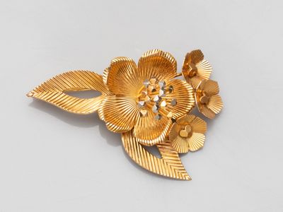 Broche fleur en or jaune 750°/°° (18K), à décor finement cis…