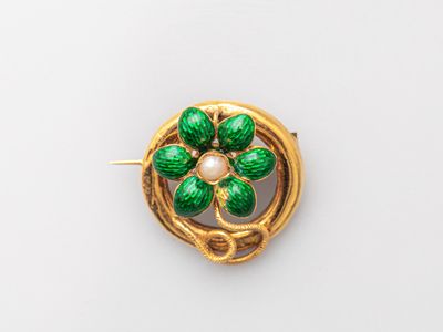 Broche ronde ajourée en or jaune 750°/°° (18K), à décor émai…