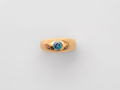 Petite chevalière en or jaune 750°/°° (18K), sertie d'un pet…